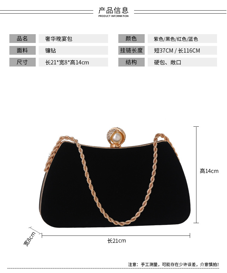 Transfronterizo nueva moda simple bolsa de terciopelo Bolsa de Diamantes vestido de un hombro crossbody bolso cheongsam portátil bolso de Noche del banquete