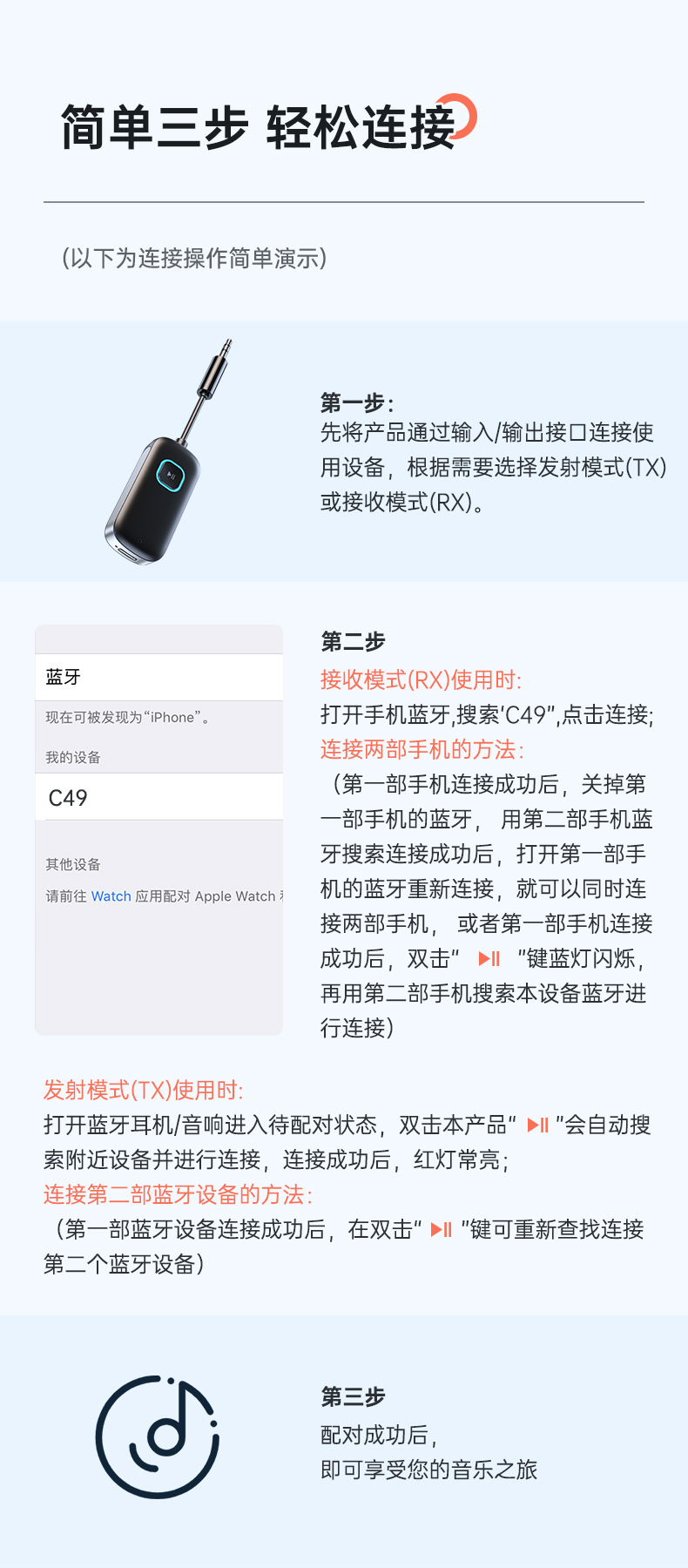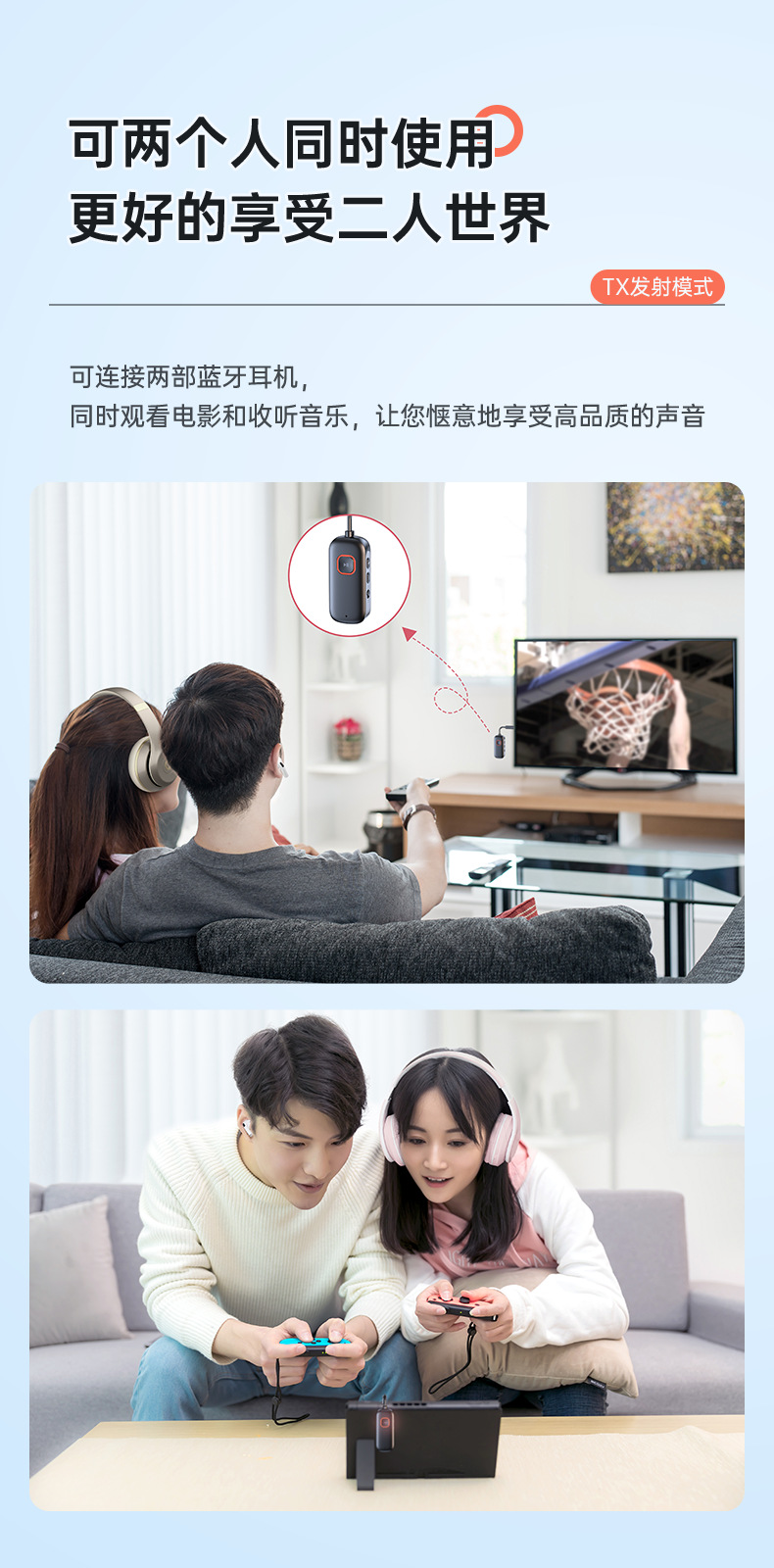 5.蓝牙发射功能:连接2副蓝牙耳机