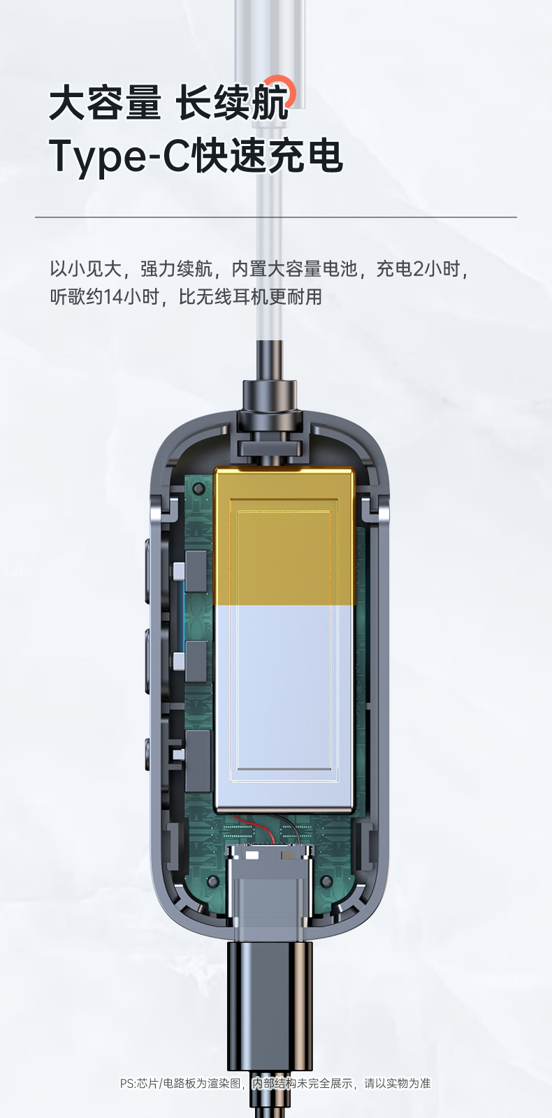 3.供电电压:DC 5V (内置电池250mAh)续航约14小时