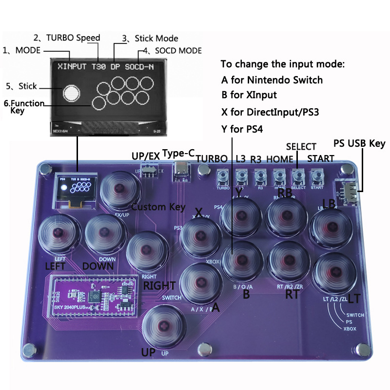 B - PC/Android/XInput:适用于PC电脑或PC 360,OLED显示屏:XINPUT