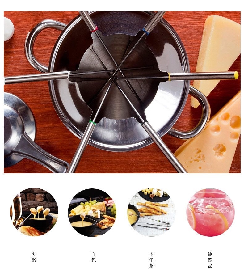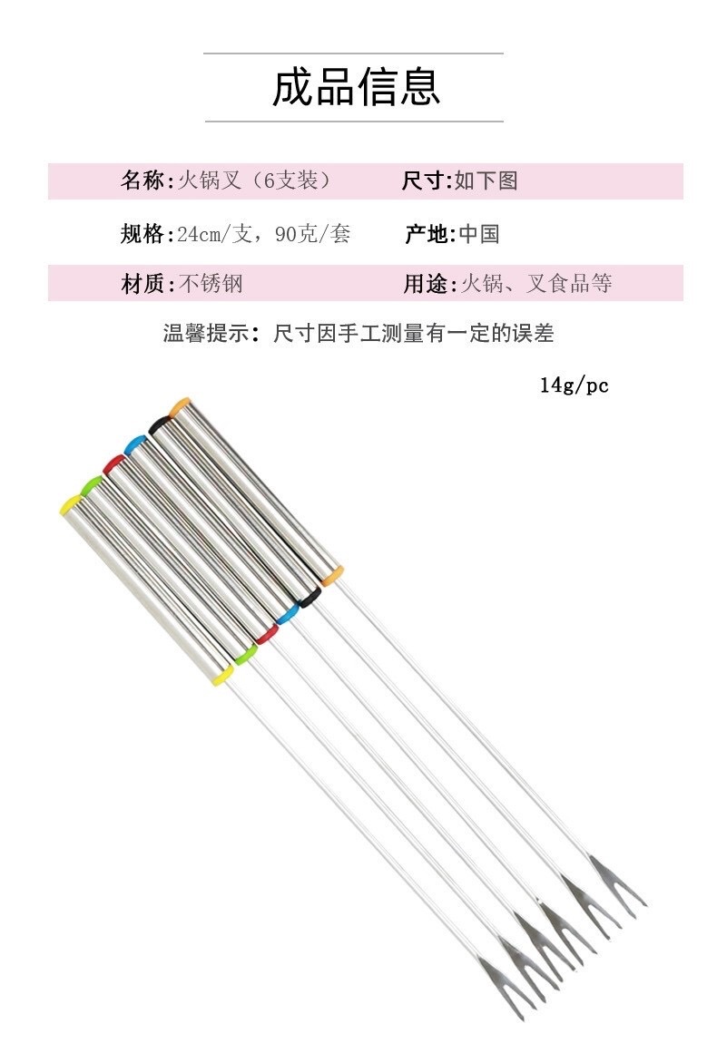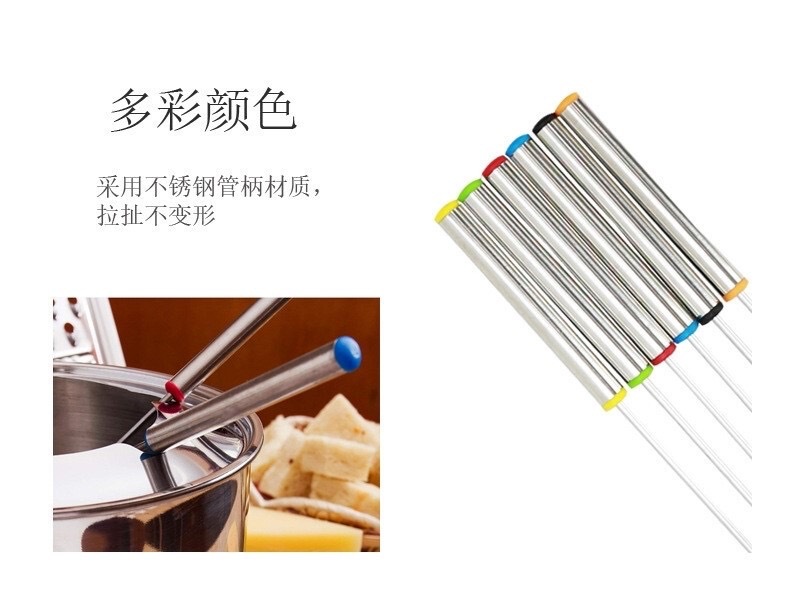 Seis piezas tenedor de la fruta de acero inoxidable multi-color cadena herramienta olla caliente palo postre tenedor al aire libre barbacoa tenedor olla caliente picante