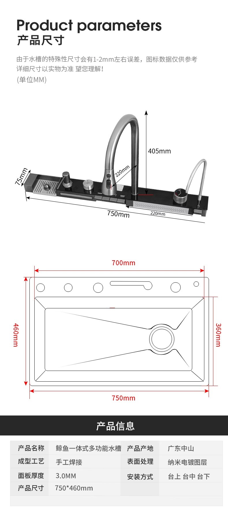 | Especificaciones | Whale piano digital display sink |