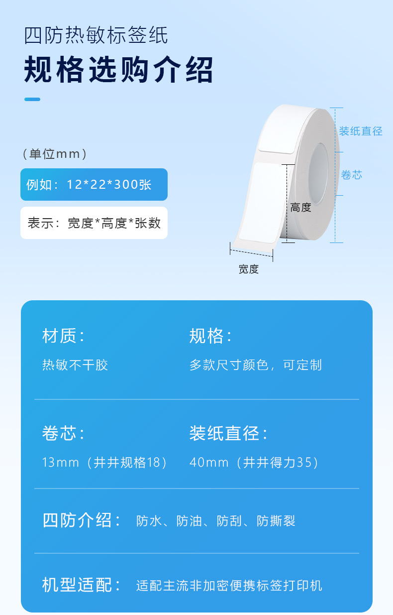 ModeloNúcleo de bobina pequeño/12mm/14mm/15mm/16mm/4m/papel espaciado/papel hueco/papel continuo/Transfronterizo Amazon/resistente al agua no se rompe