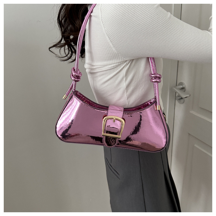 Bolso de Mano Pequeño de Moda para Mujer 2024, Nuevo Bolso de Hombro Simple de Color Sólido Texturizado, Bolso Baguette Informal y Moderno