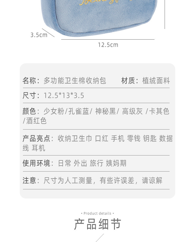 | Color | Rosa [bolsa de almacenamiento de la servilleta sanitaria],Azul Pavo Real [bolsa de almacenamiento de servilletas sanitarias],Negro clásico [bolsa de almacenamiento de servilletas sanitarias],Gris avanzado [bolsa de almacenamiento de servilletas sanitarias],Vino tinto [bolsa de almacenamiento de la servilleta sanitaria],Caqui [bolsa de almacenamiento de servilletas sanitarias] |