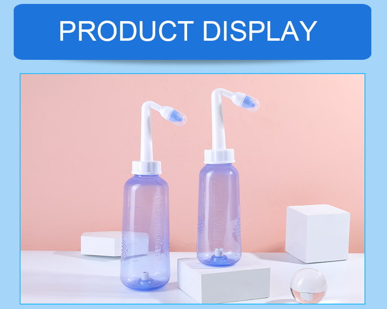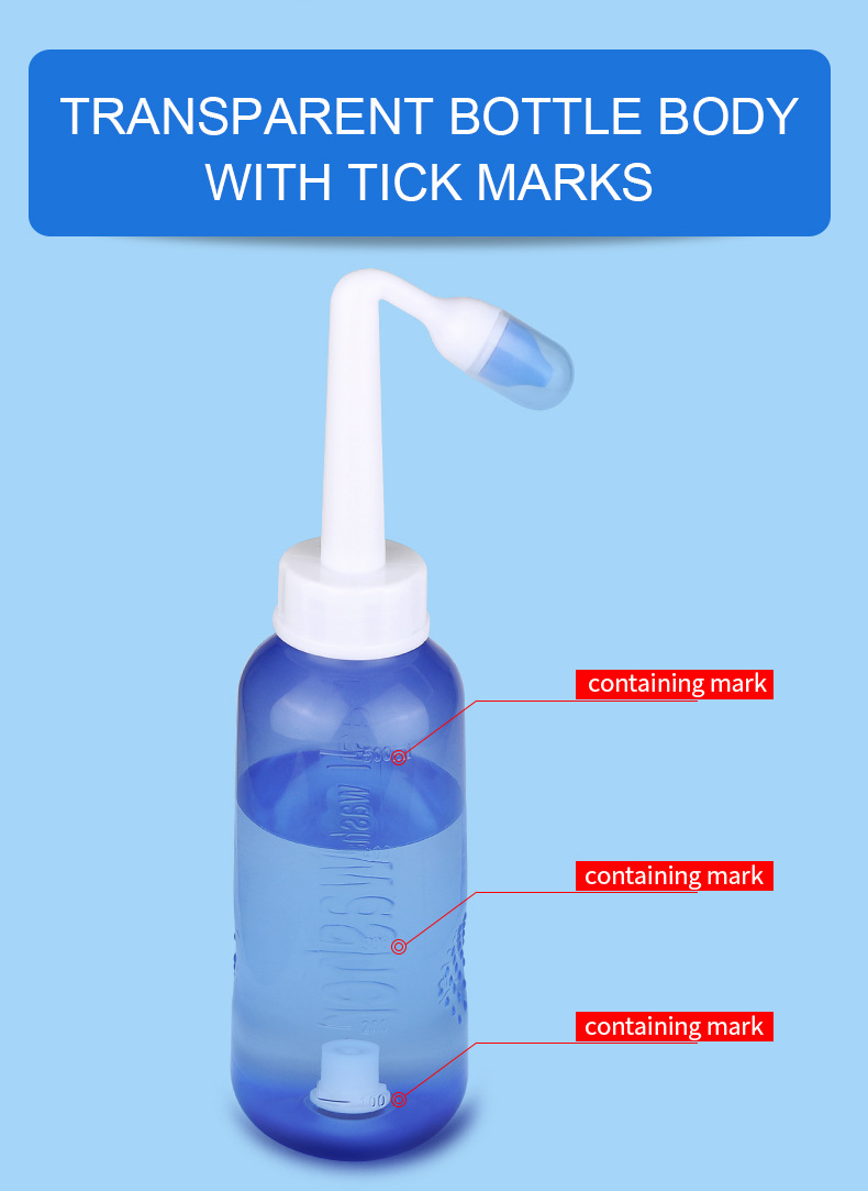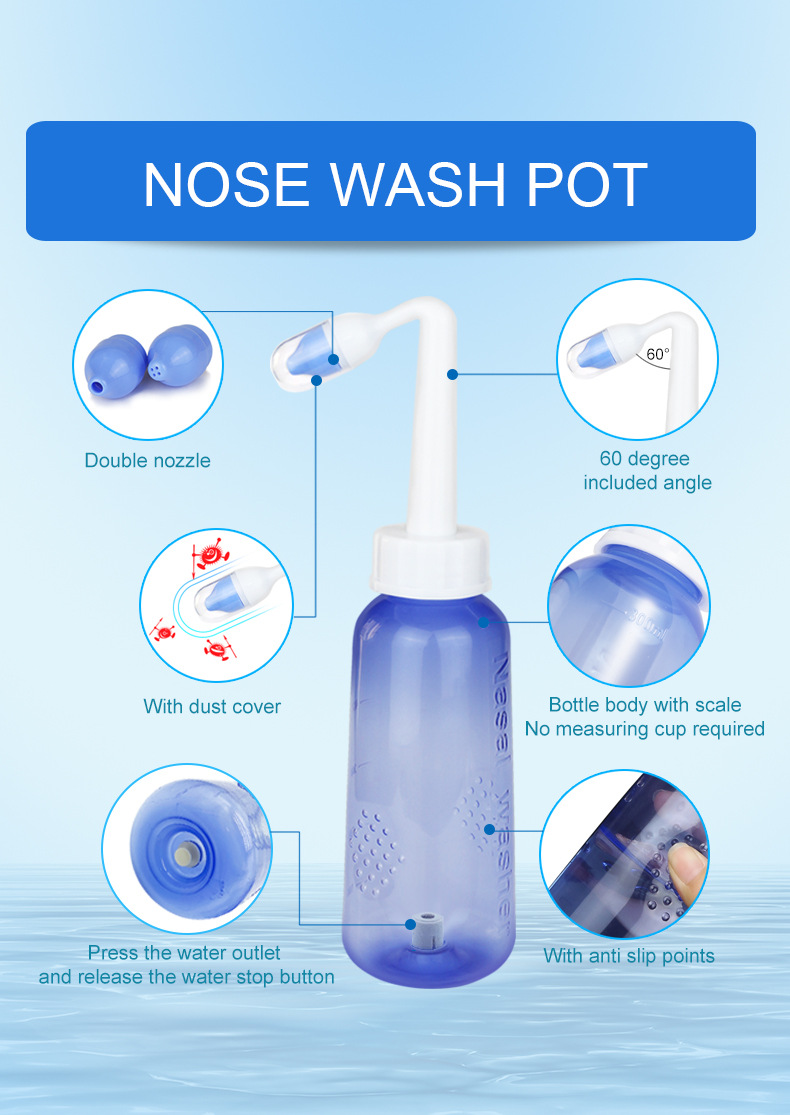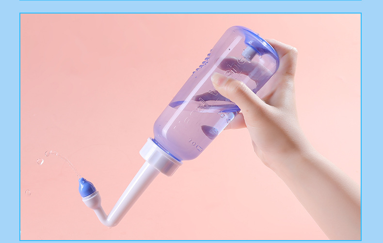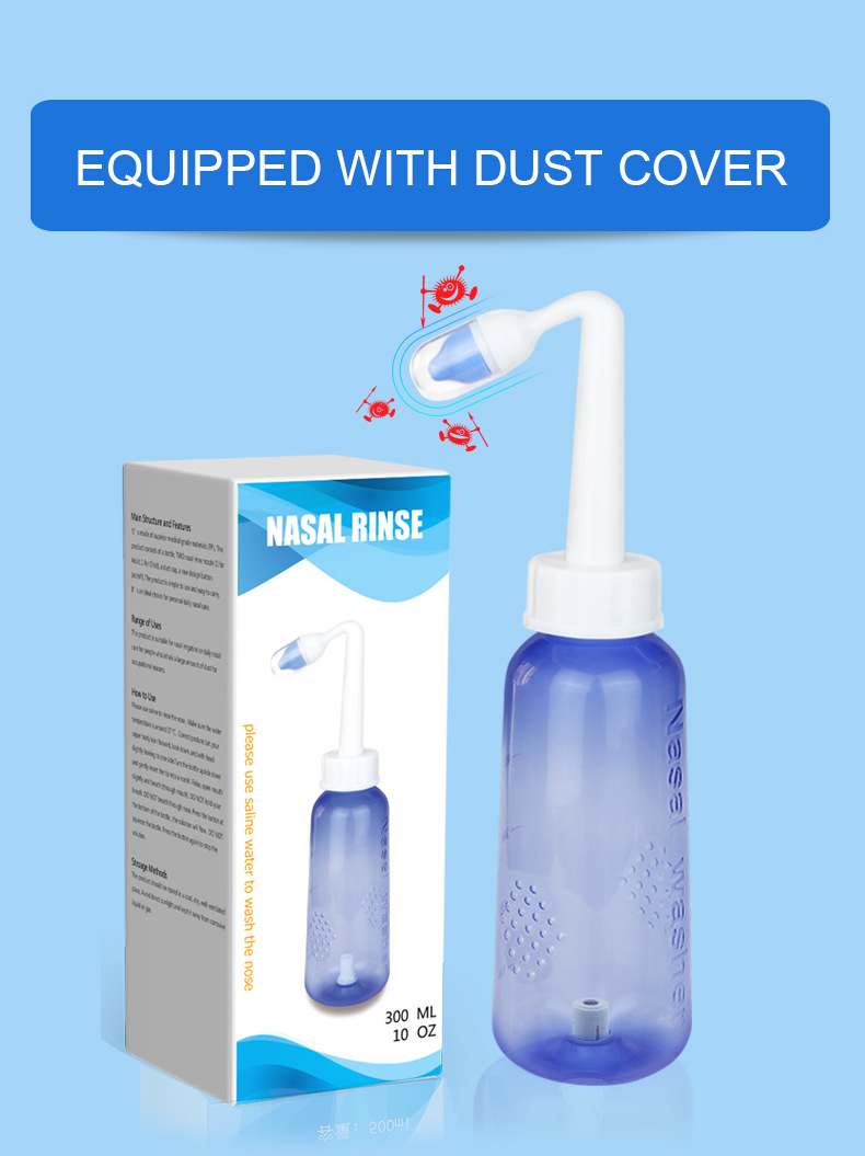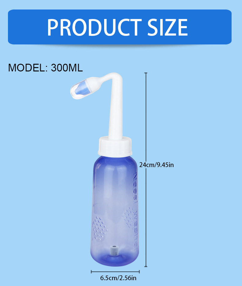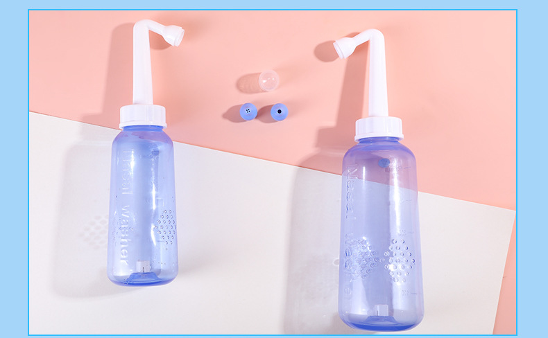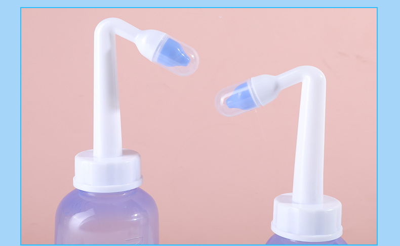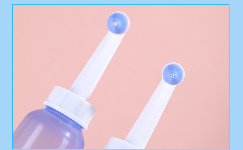 使用时建议搭配洗鼻盐使用,以防呛鼻!300ml洗鼻器搭配2.7克/包规格的洗鼻盐,调配成0.9%浓度的洗鼻盐水。