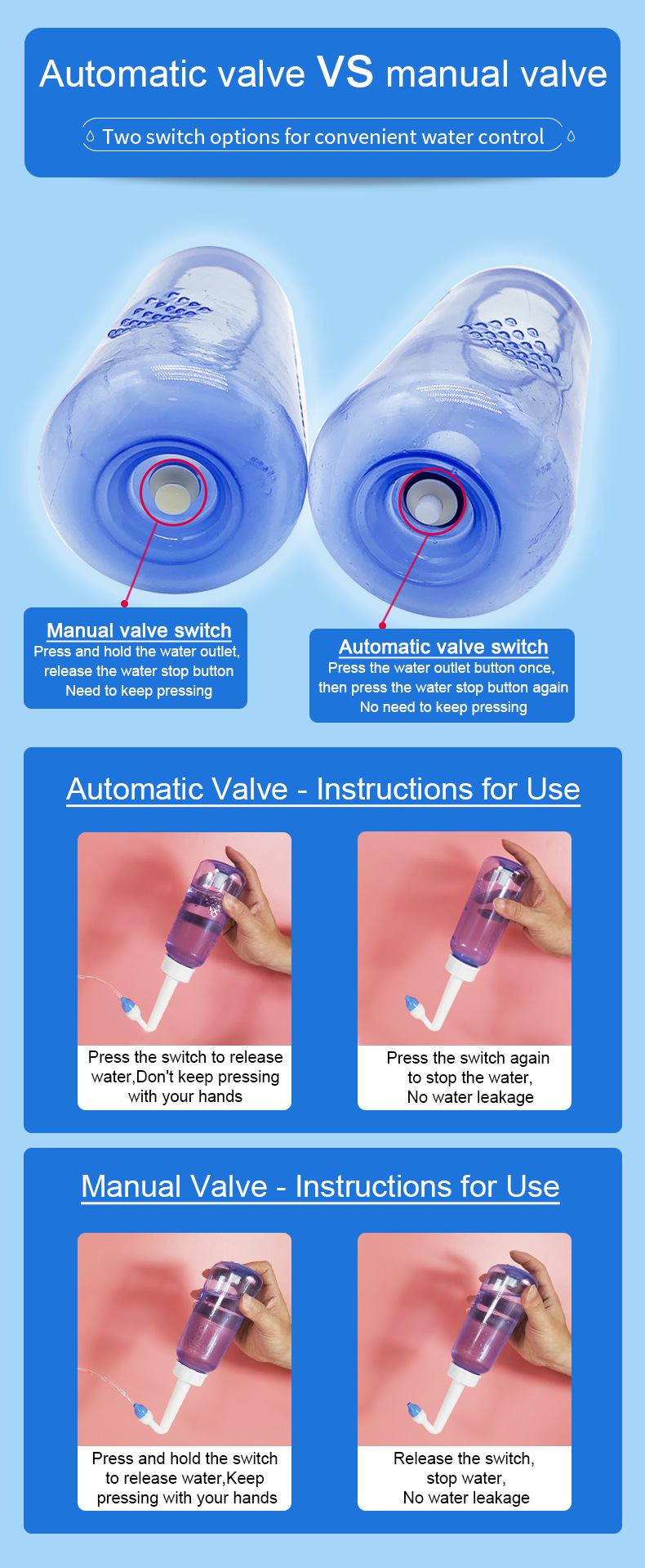 (2)自动阀开关:按一下出水,按一下停水,使用时不需要一直按压;