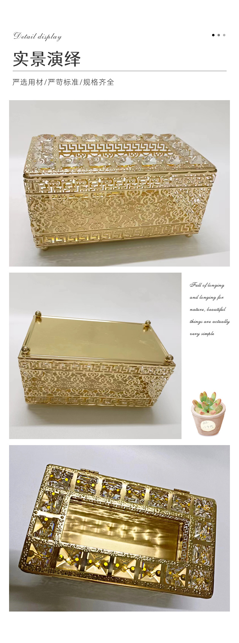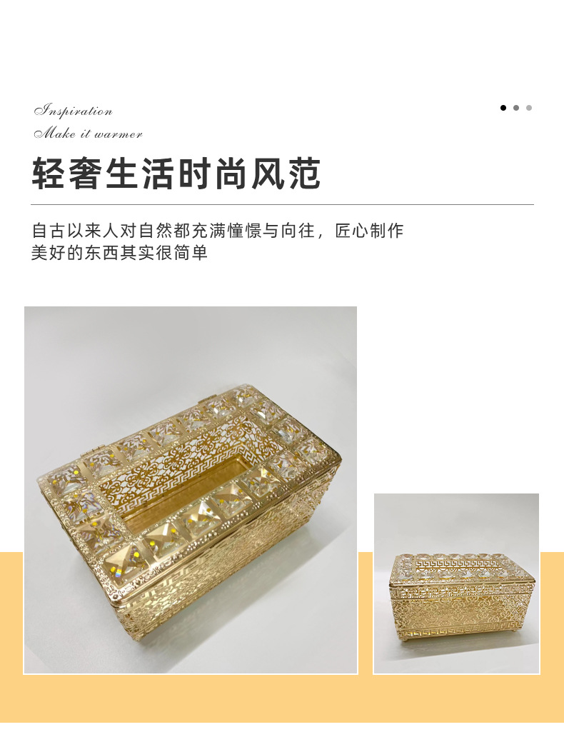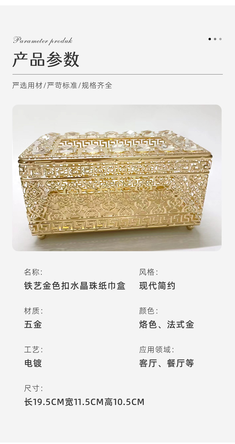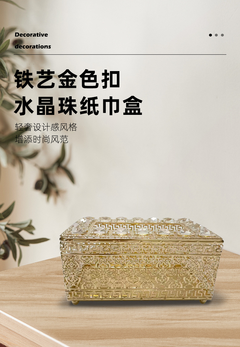 Hierro de oro hebilla cuentas de cristal caja de pañuelos estilo de lujo creativo cristal sala de estar mesa de café decoración adornos