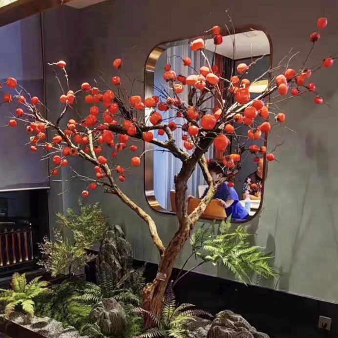 仿真柿子树,树杆为实木真树杆,柿子是仿真柿,无毒无味,材料环保无污染。