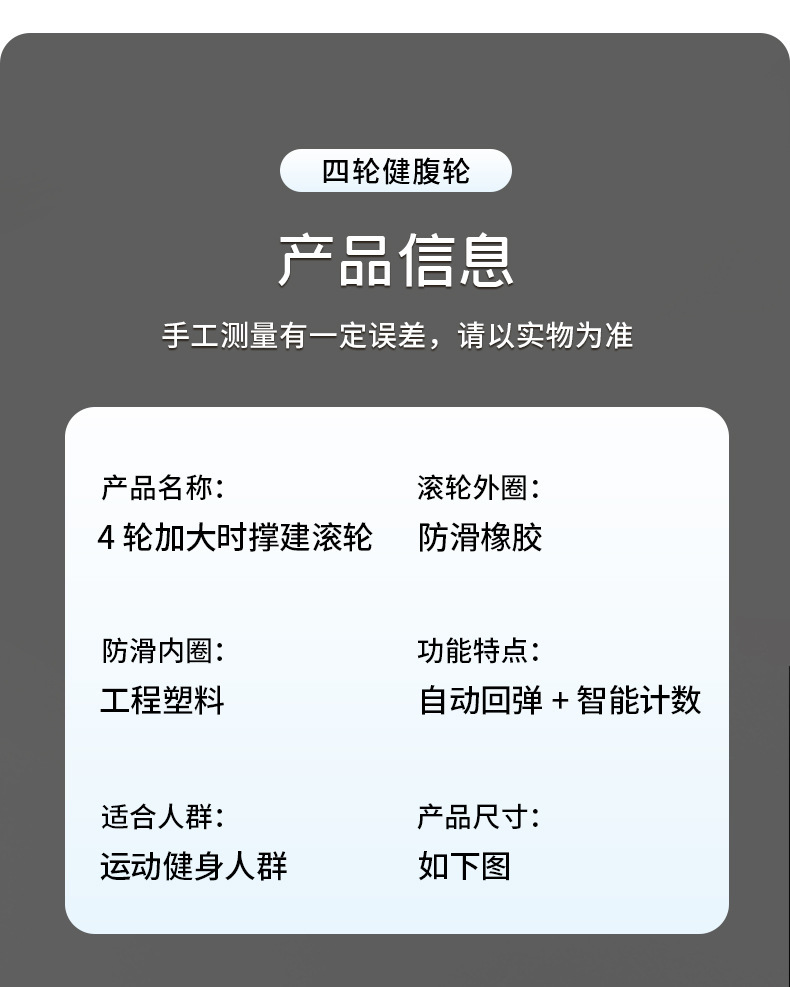 | Colores | Interconexión inteligente de APP: rueda de abdomen del tanque [pantalla grande de 4 ruedas]-producto único azul con cojín de rodillas,Rueda abdominal de cuatro ruedas [rojo] Soporte de seis codos Año del dragón Estilo limitado,Versión mejorada de la interconexión inteligente de la aplicación: rueda de abdomen del tanque [almohadilla de cuatro ruedas y cuatro codos] con almohadilla de rodillas,Modelo básico: rueda abdominal del tanque [cuatro ruedas] azul cielo vacío con cojín de rodillas,Modelo básico: rueda abdominal del tanque [cuatro ruedas] vitalidad naranja con cojín de rodillas,Rueda básica para el abdomen del tanque [cuatro ruedas] negro ardiente y fresco con cojín de rodillas,Cojín de posición de 68*150cm [separado de la rueda abdominal] Color aleatorio |