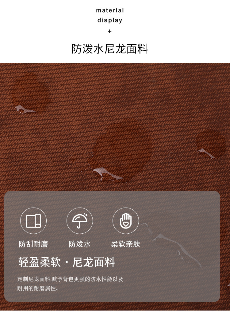 产品内部全部使用全新定制的“人字纹”里布,手感顺滑,不易脱色抽丝,拉力更强。