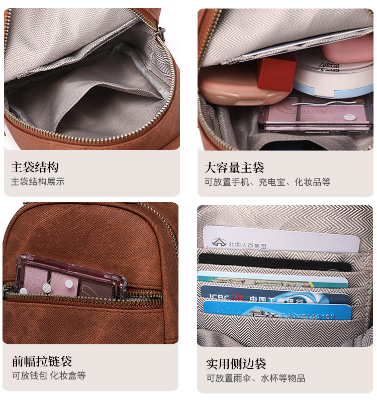 主袋内部使用全新耐磨里布制作,设计有对称的两个内兜设计,多个卡位设计