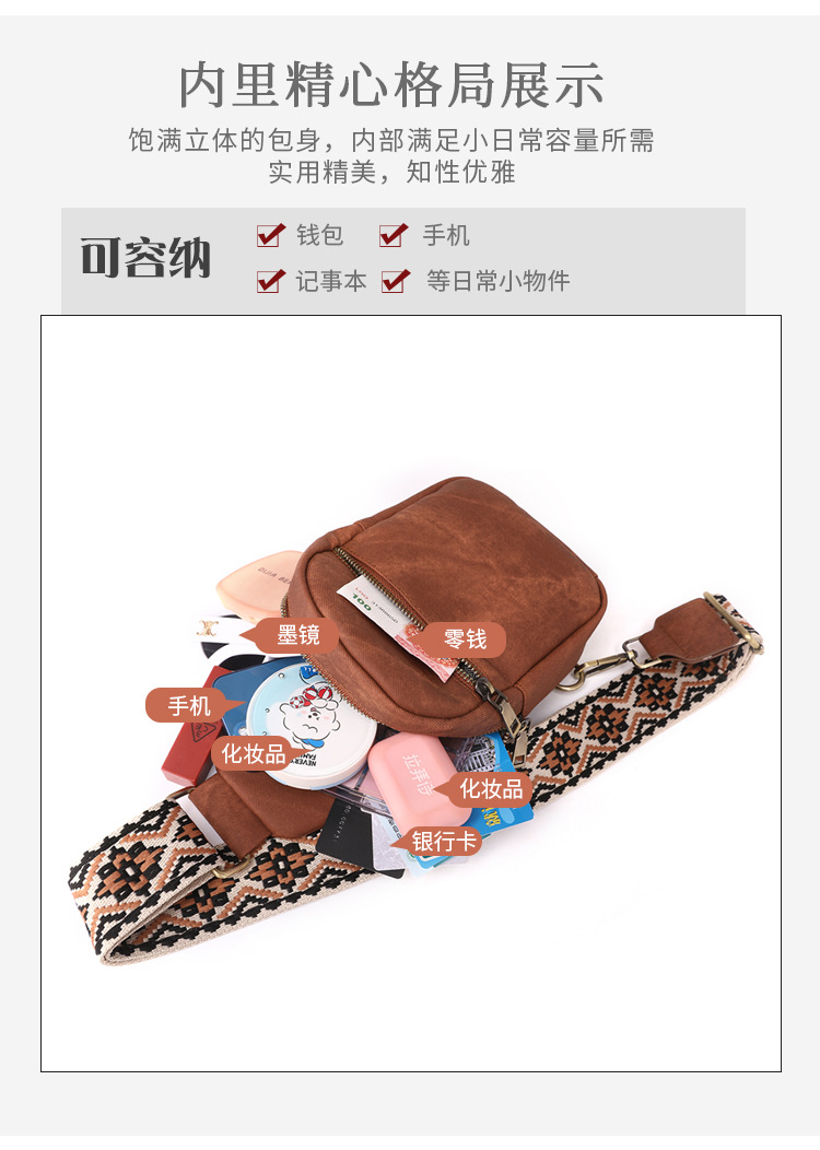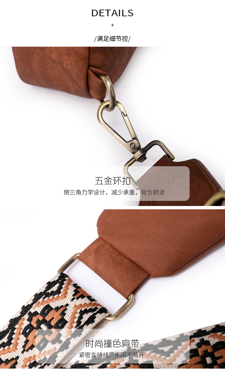 每个产品都单肩配置了不同配色的定制编织定制背带,搭配复古五金配件;