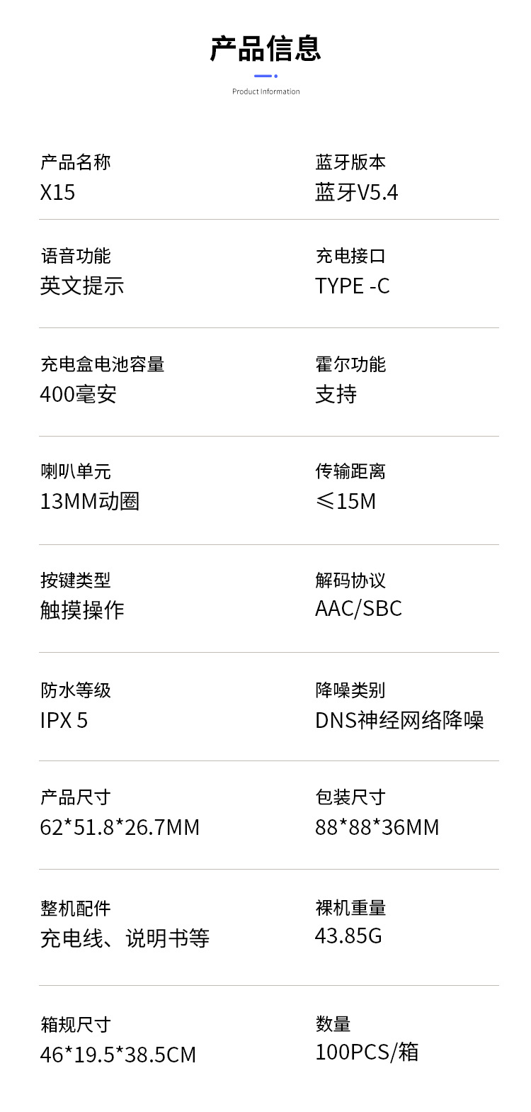| Función | Impermeable,estéreo,Reducción de ruido,Pantalla de energía,Duración de la batería,Función de llamada,Control por voz,Música de apoyo,Pantalla digital,Deportes electrónicos de baja latencia,otro |