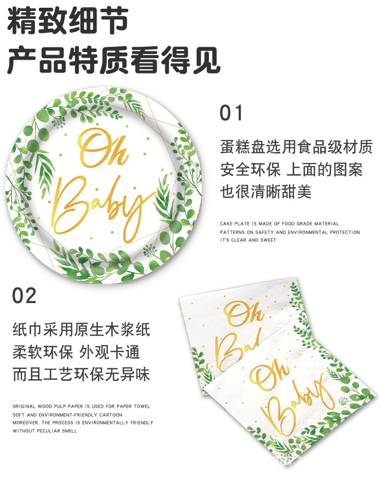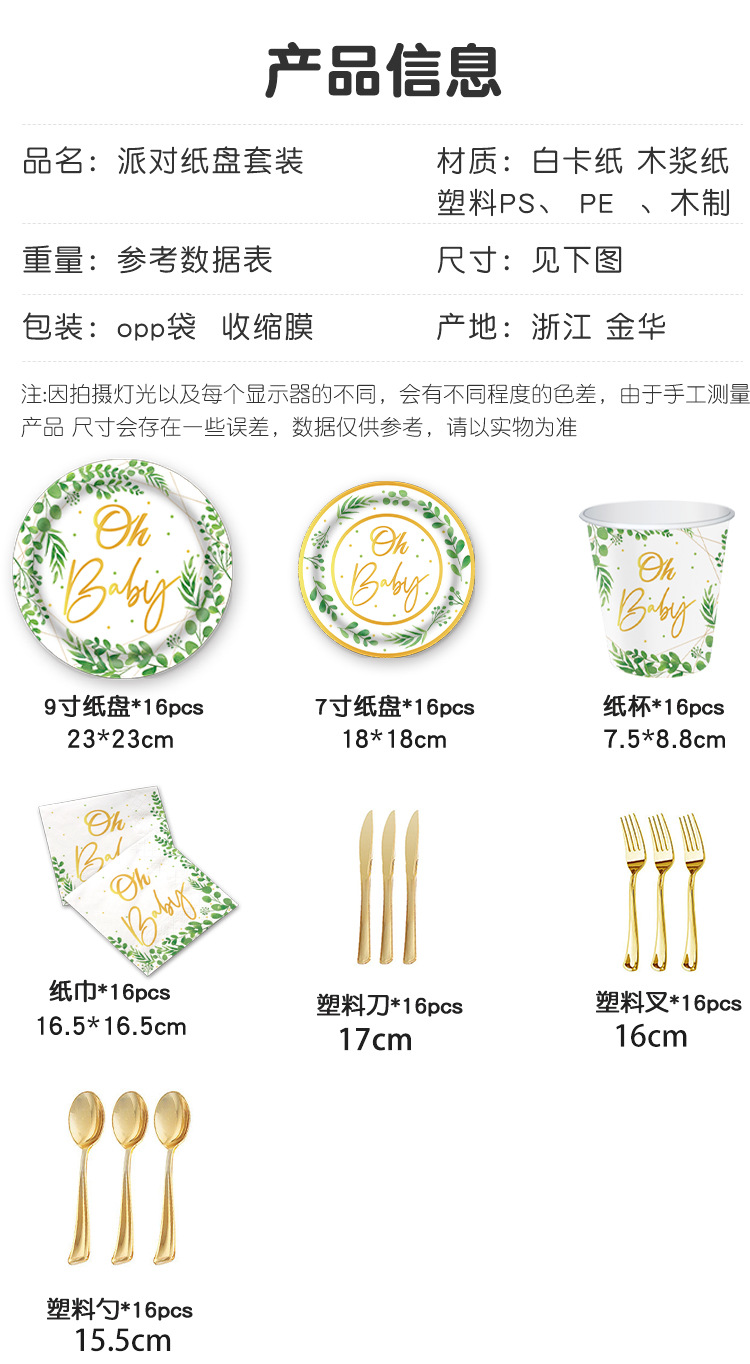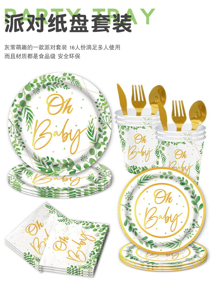 Nuevo transfronterizo Sage carta infantil fiesta de cumpleaños traje de vajilla plato de papel decorativo desechable taza de papel al por mayor