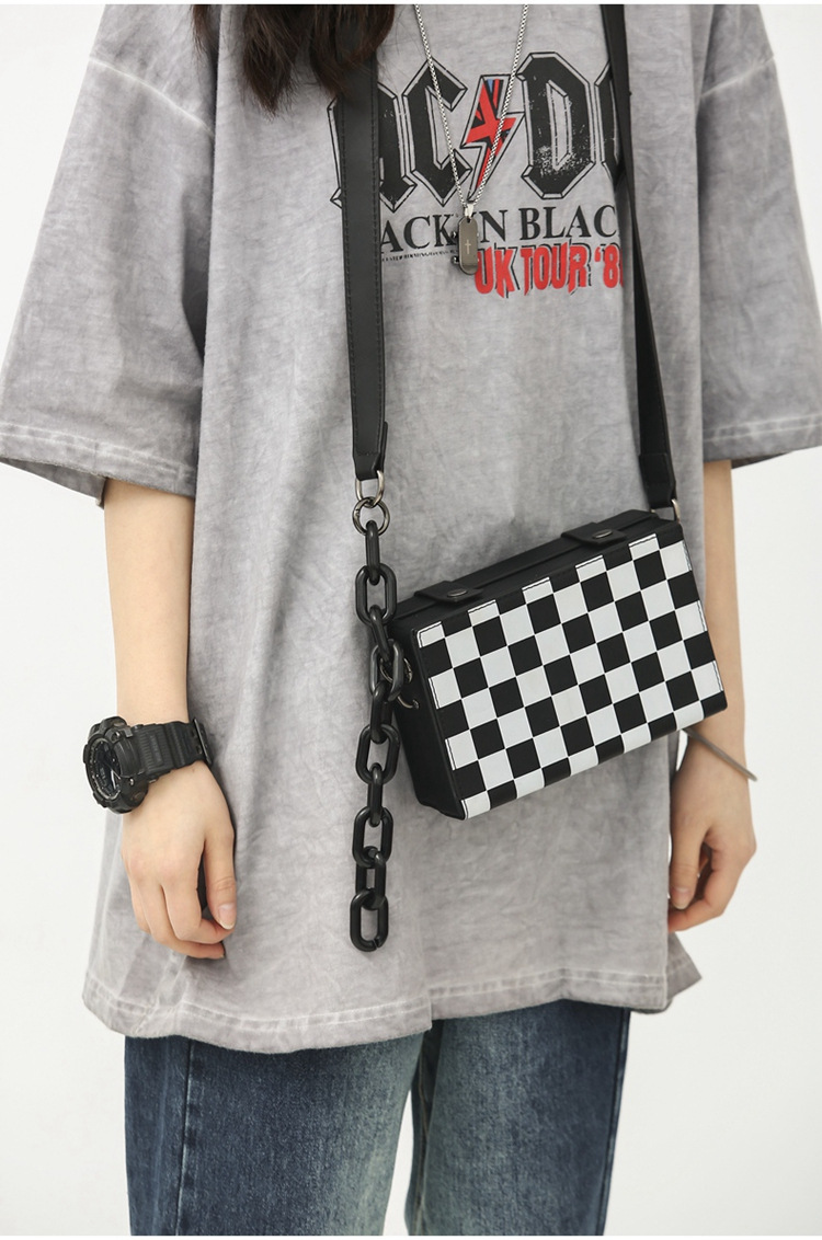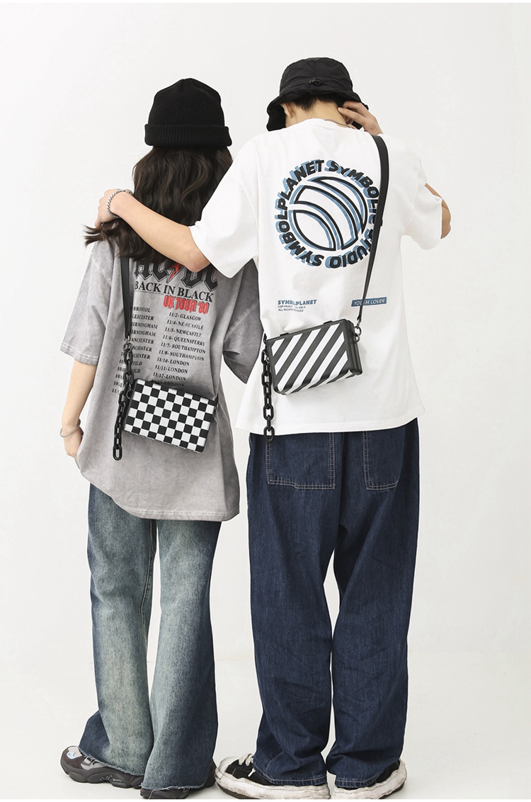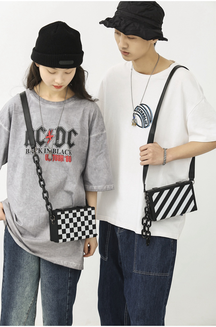 Bolso DE LA CAJA Bolso de hombro casual fresco de moda para hombres Bolso de teléfono móvil a rayas en blanco y negro Tablero de Damas Bolso de mujer a cuadros 2023 nuevo bolso de mensajero
