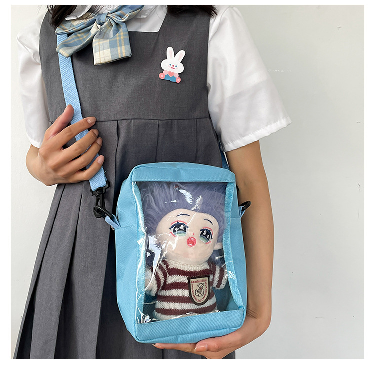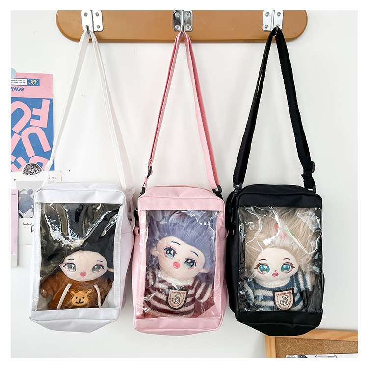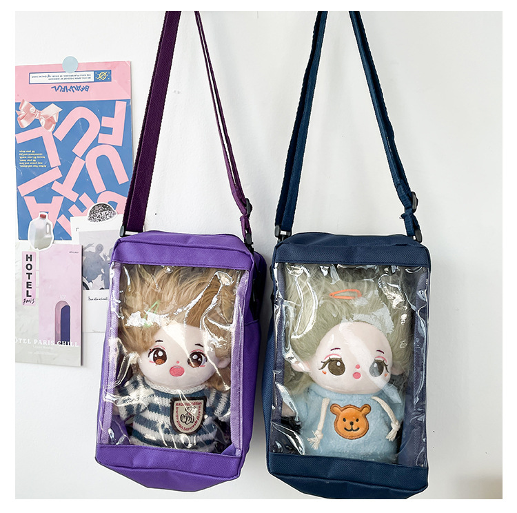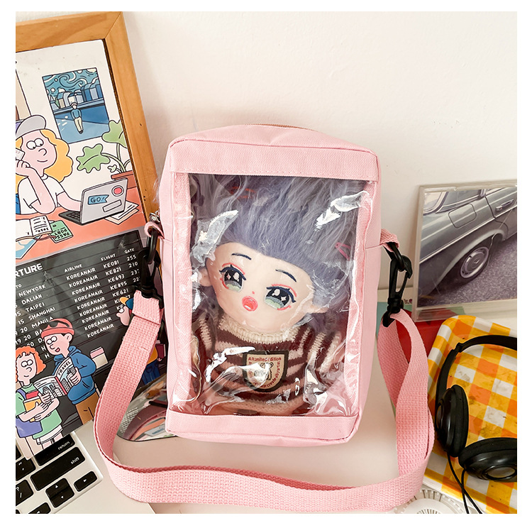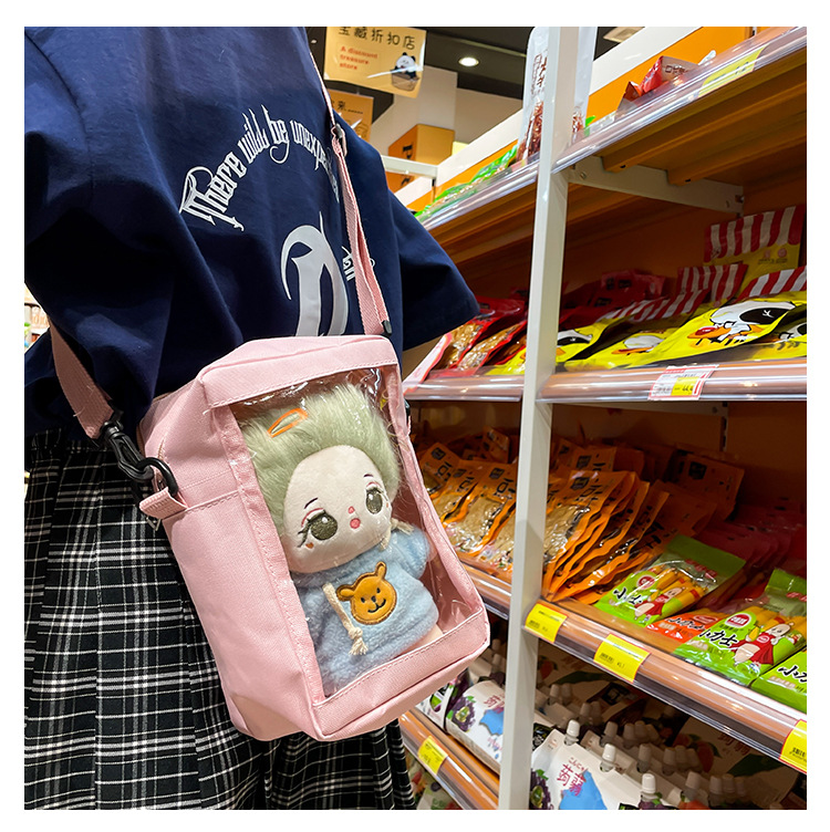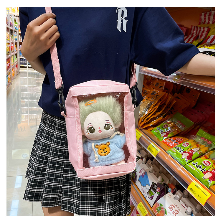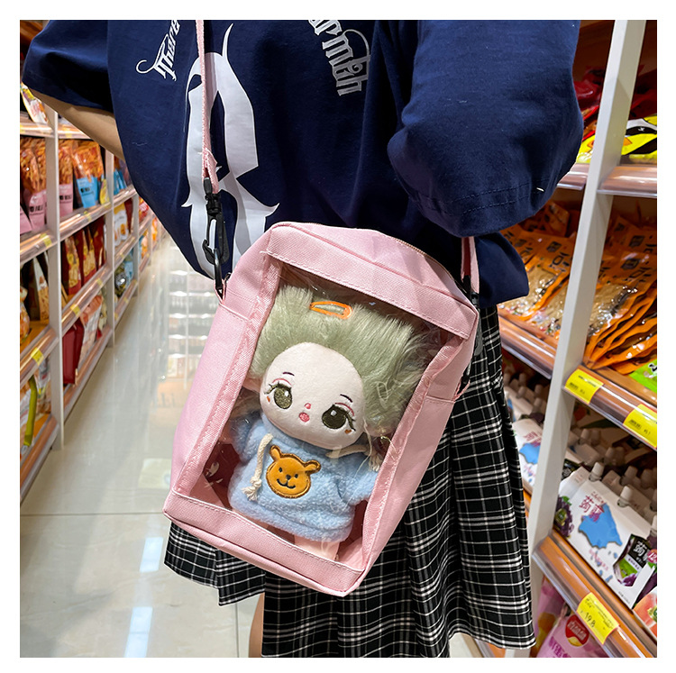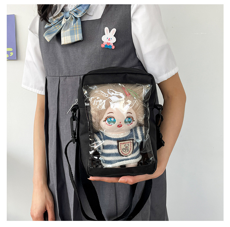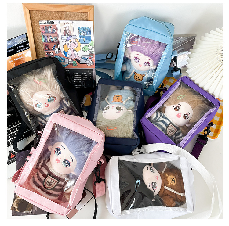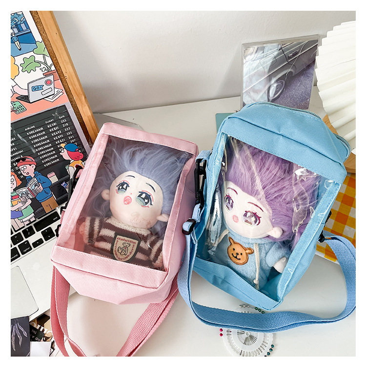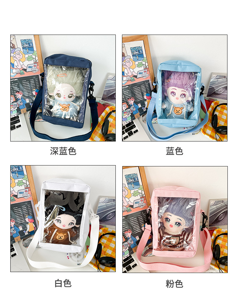 Muñeca de algodón bolsa de excursión ins japonés 20CM bolsa de bebé bolsa de dolor estudiante lindo transparente de doble capa bolsa de mensajero del hombro