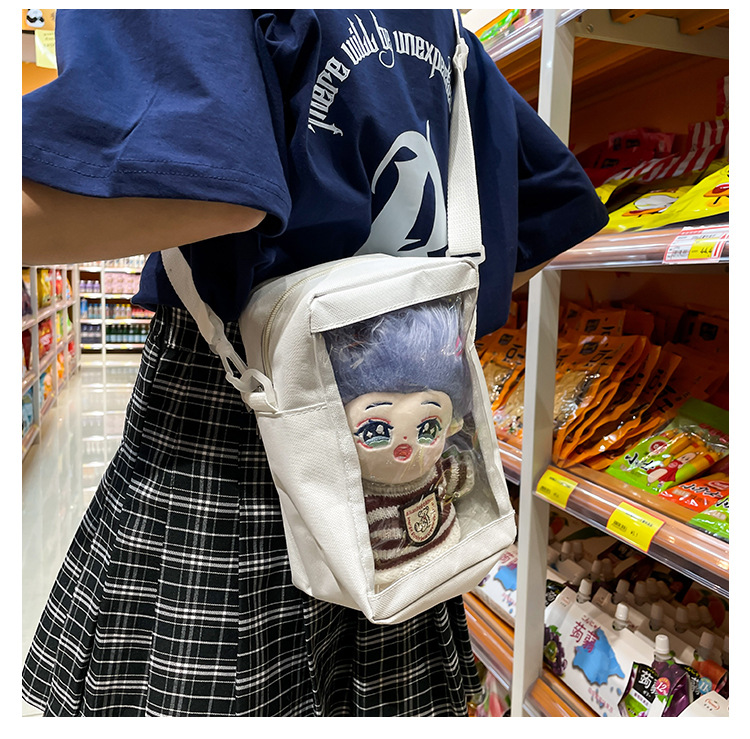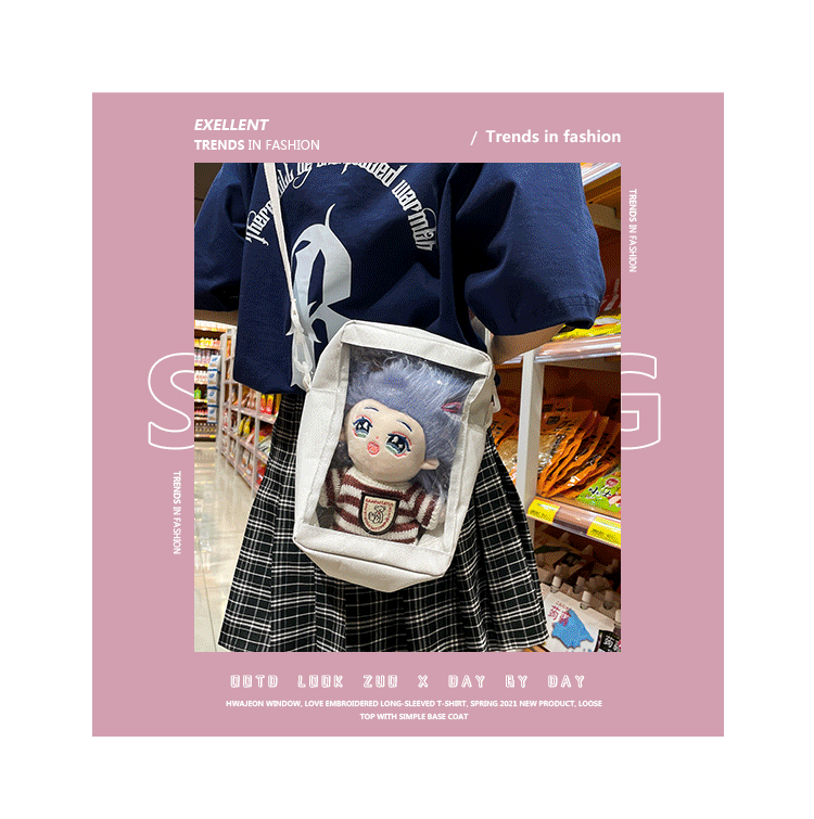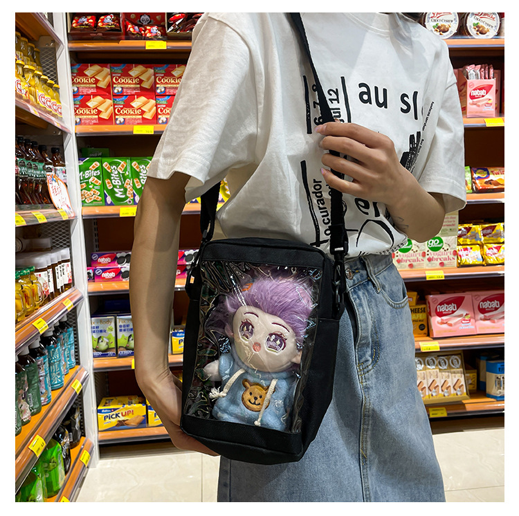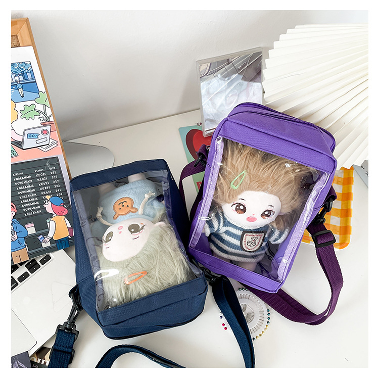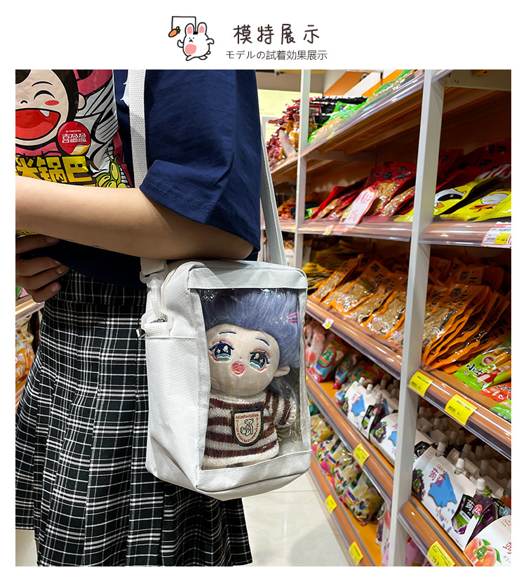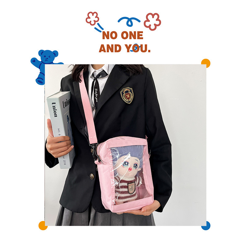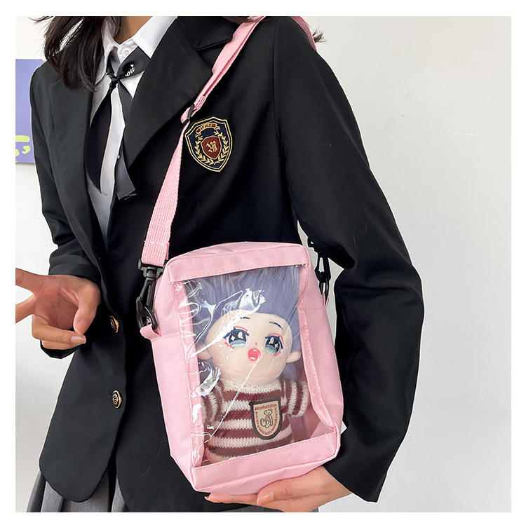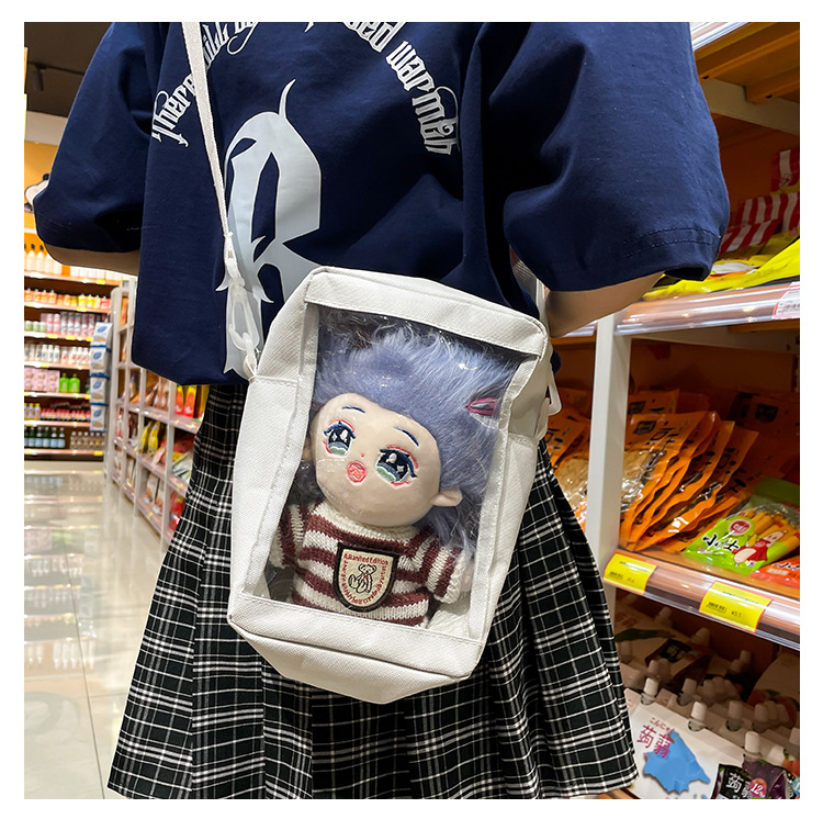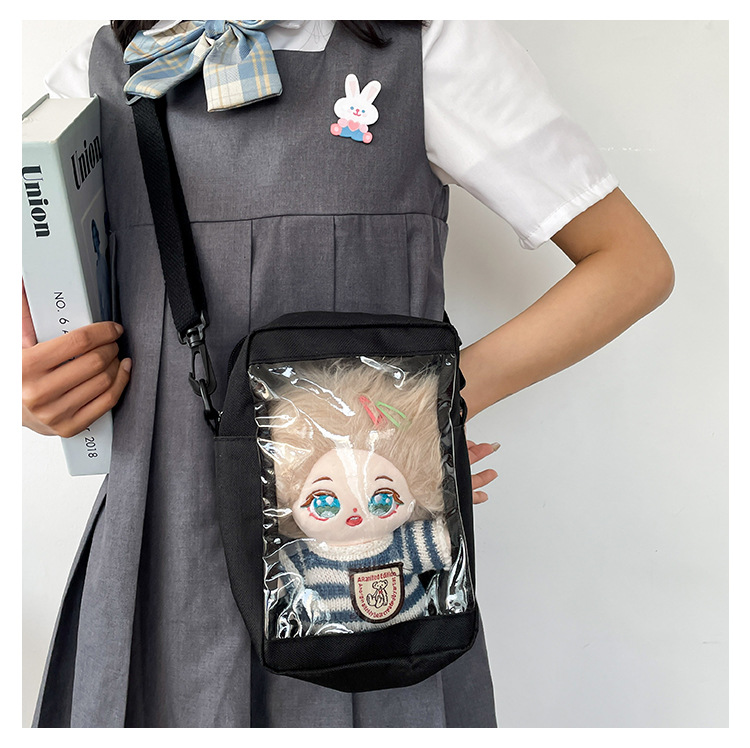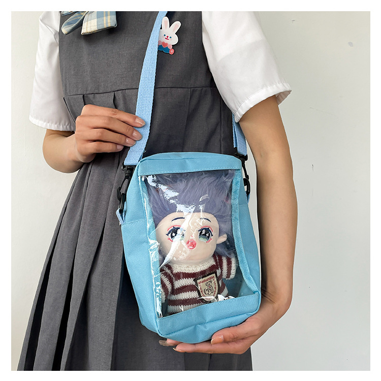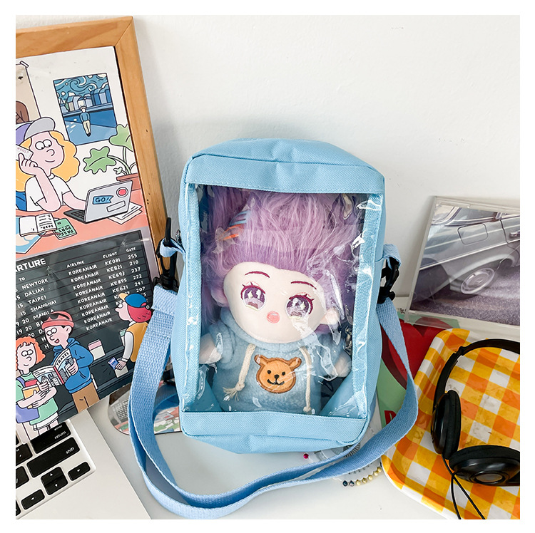 Muñeca de algodón bolsa de excursión ins japonés 20CM bolsa de bebé bolsa de dolor estudiante lindo transparente de doble capa bolsa de mensajero del hombro