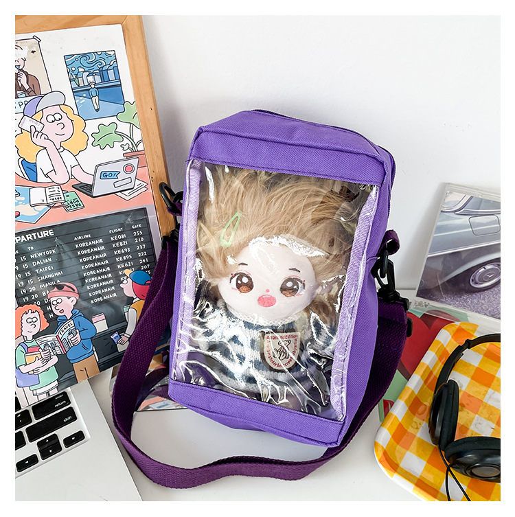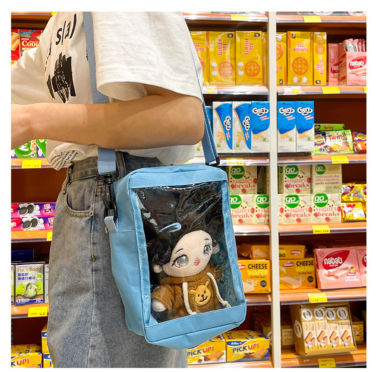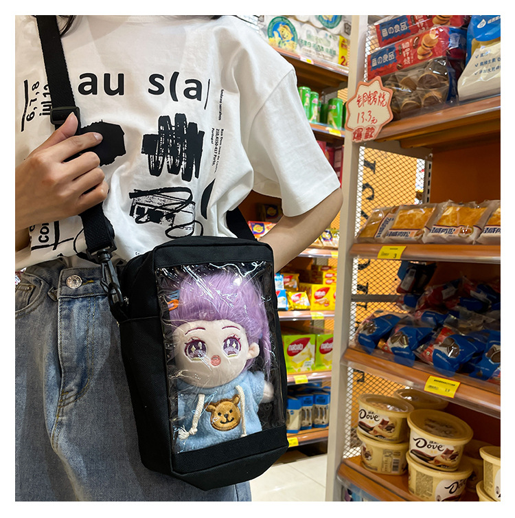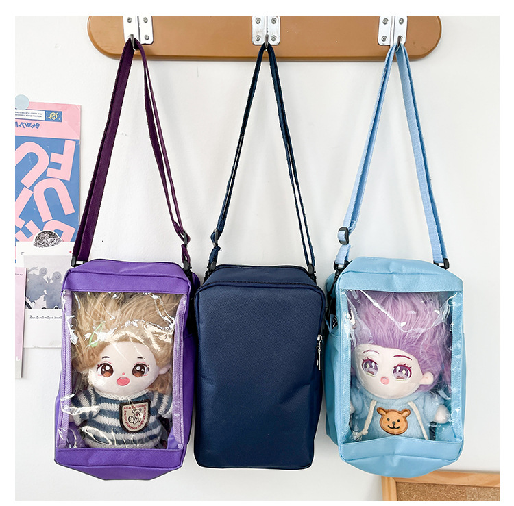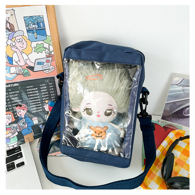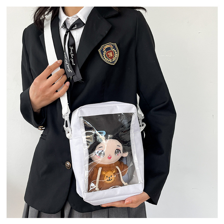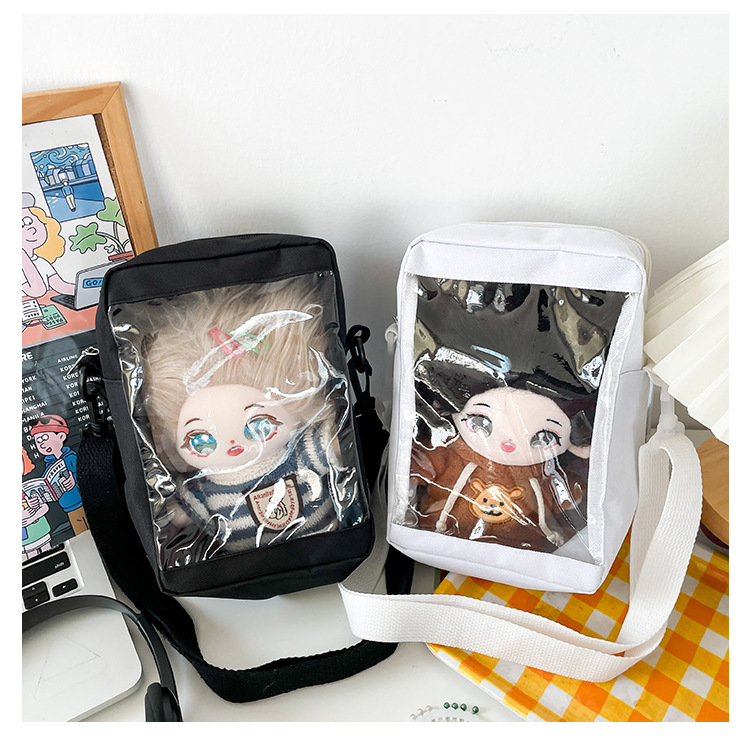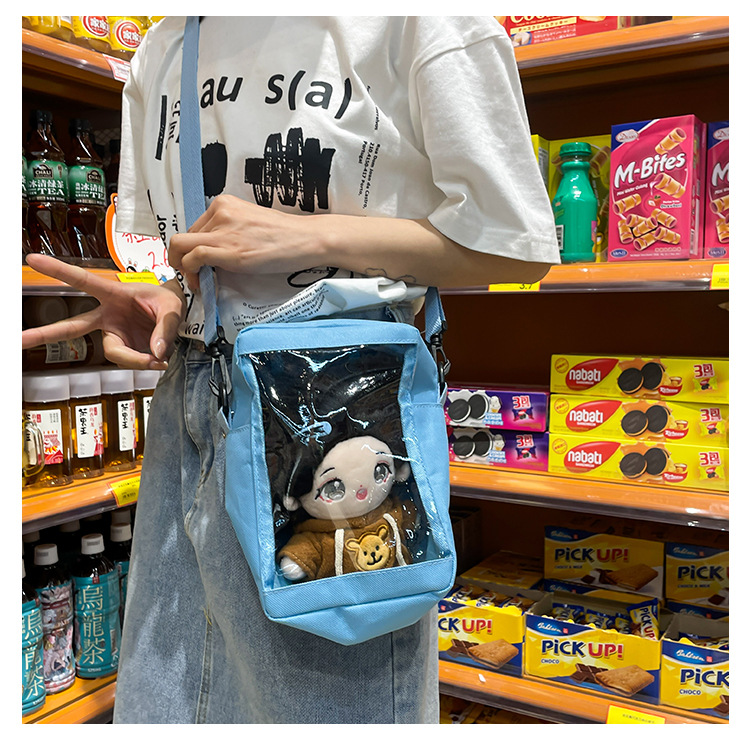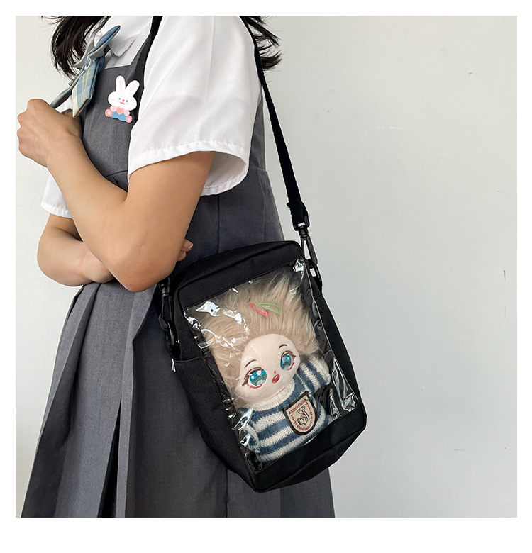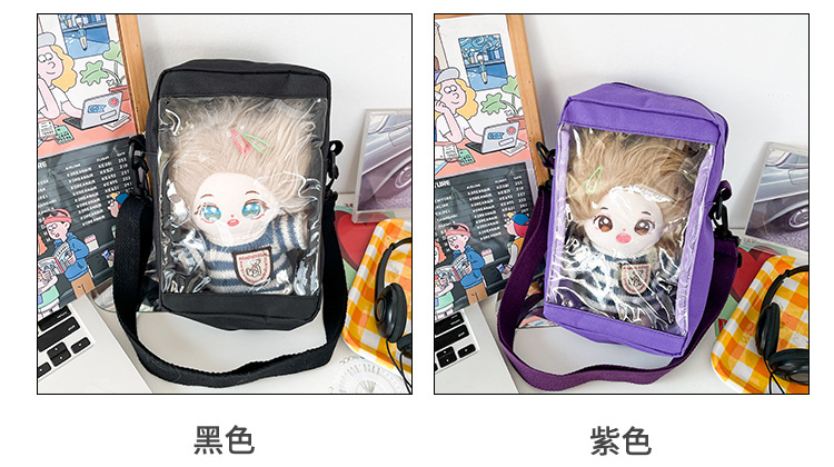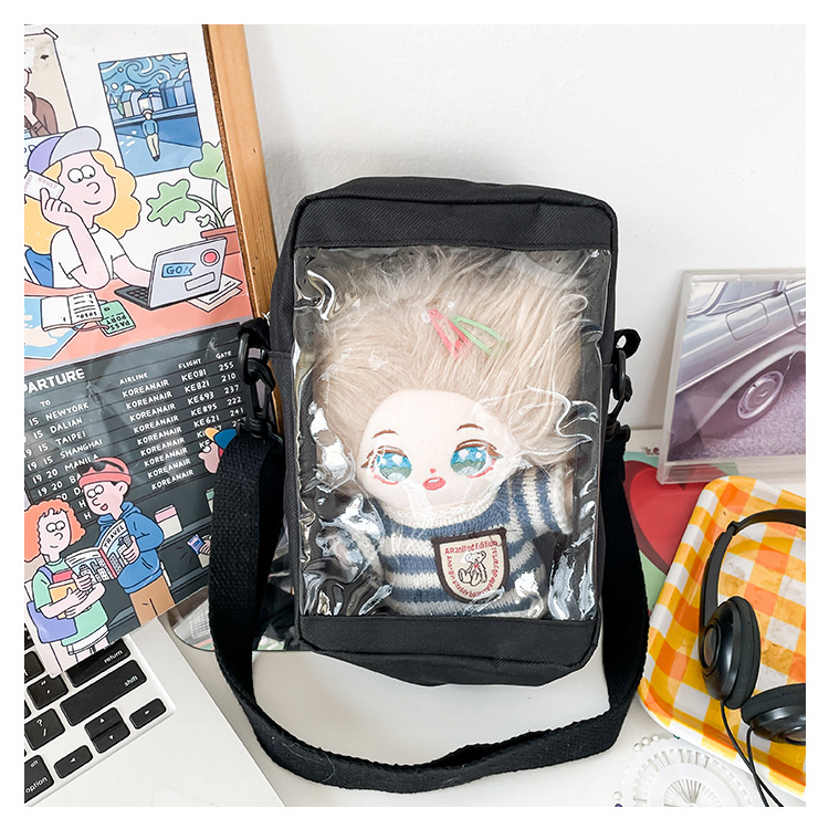 Muñeca de algodón bolsa de excursión ins japonés 20CM bolsa de bebé bolsa de dolor estudiante lindo transparente de doble capa bolsa de mensajero del hombro