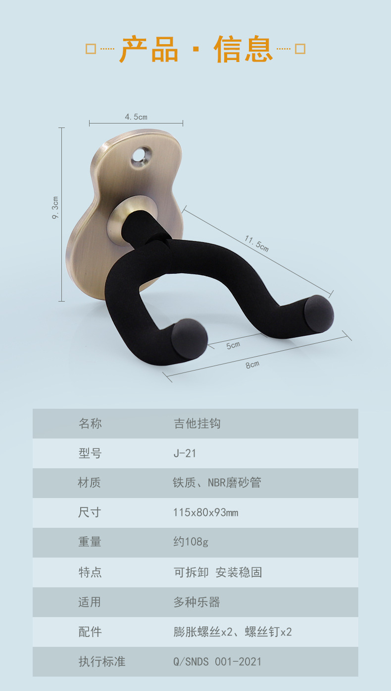 J-21 metal Guitar Hook (Rose Gold),Gancho de guitarra de metal J-21 (plata esmerilada),Gancho de guitarra de metal J-21 (negro mate),J-21 gancho de guitarra de metal (Champagne Gold),Gancho de guitarra cuadrado de metal J-22 (negro mate)
