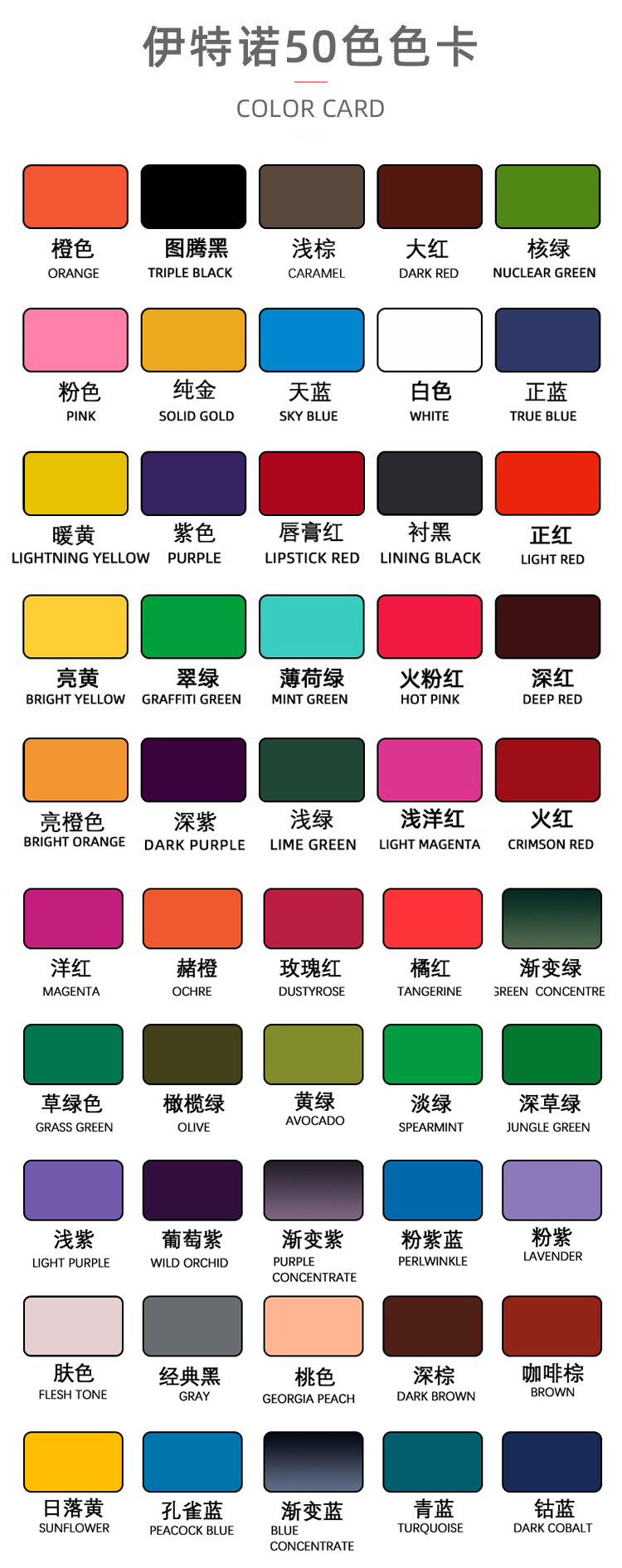 | Especificaciones | Conjunto de 7 colores,Traje de 14 colores,Traje de 16 colores,Top traje de 25 colores,Traje trasero de 25 colores,Conjunto de 50 colores |