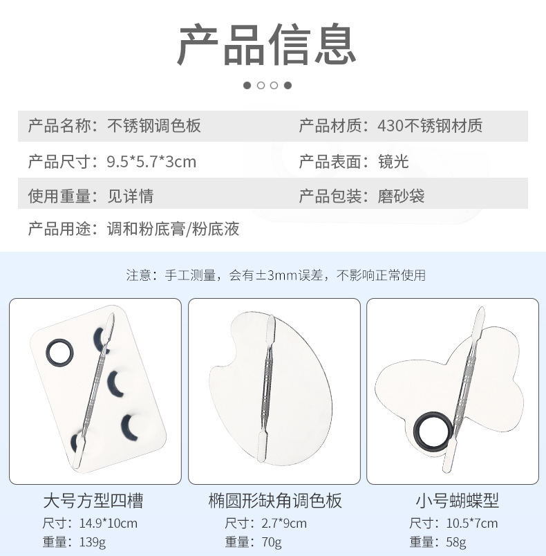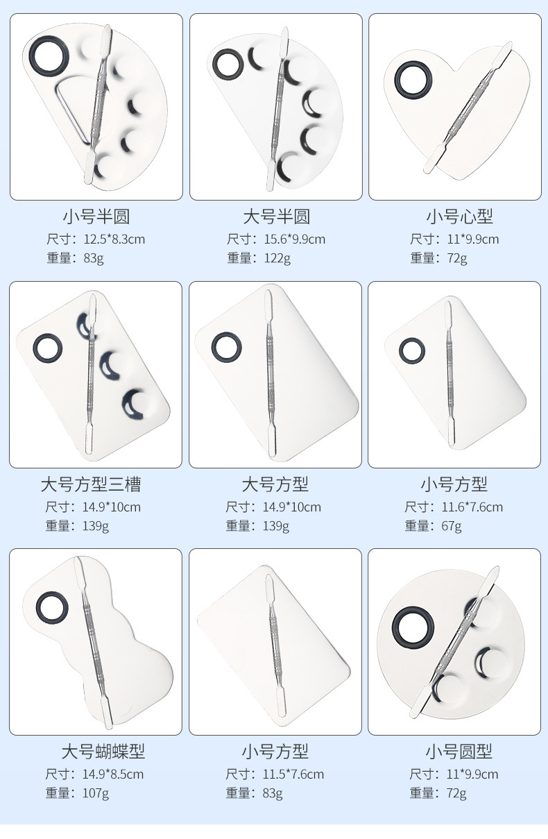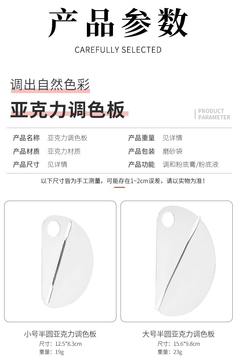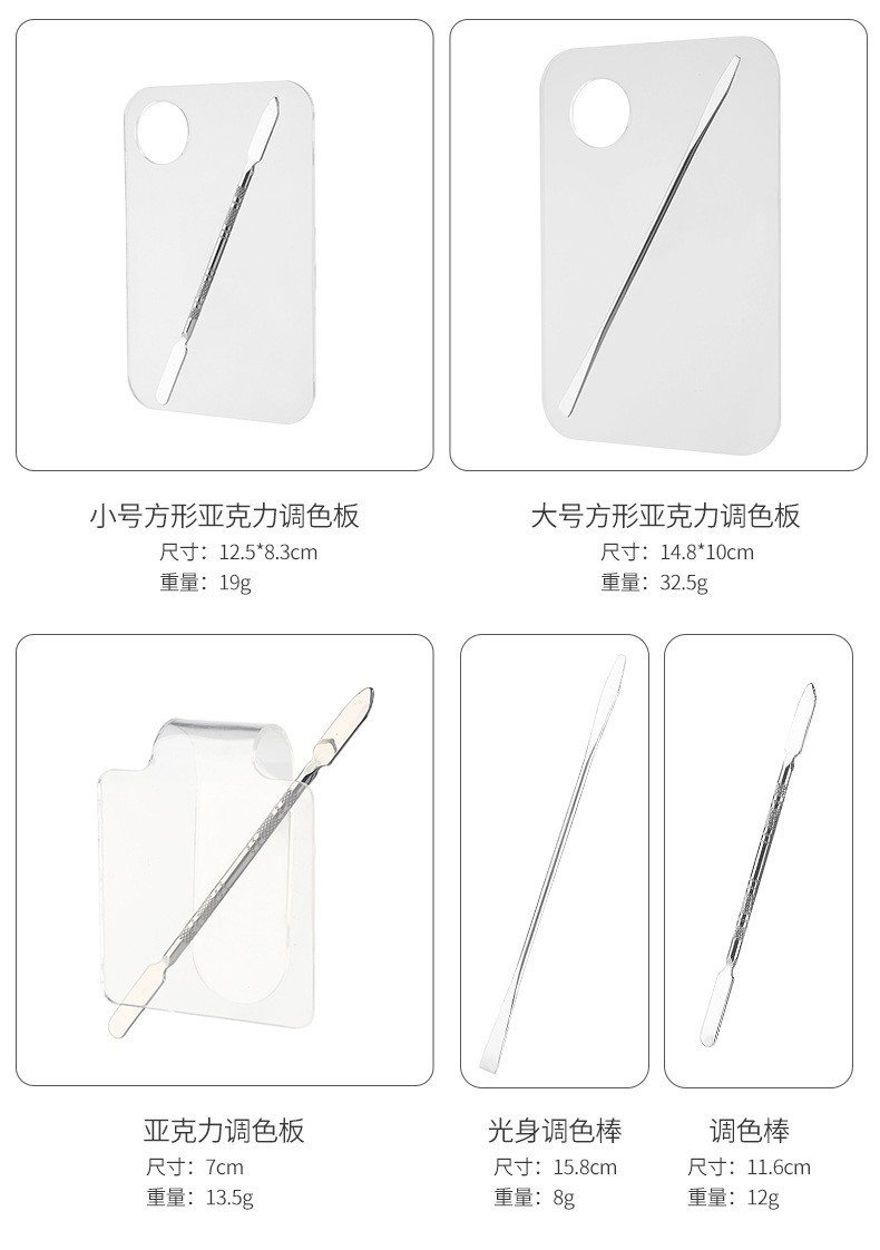 | Especificaciones | Tablero cuadrado pequeño/espejo (0,8 de espesor),Tablero/espejo generoso (0,8 de espesor),Semicírculo pequeño/espejo (0,8 de espesor),Semicírculo grande/espejo (0,8 de espesor),Tres placas cóncavas/espejo (0,8 de espesor),Cuatro placas cóncavas/espejo (0,8 de espesor),Tablero cuadrado pequeño/espejo (1.0 espesor),Tablero/espejo generoso (1.0 espesor),Semicírculo pequeño/espejo (1.0 espesor),Semicírculo grande/espejo (1.0 espesor),Tres placas cóncavas/espejo (1.0 espesor),Cuatro placas cóncavas/espejo (1.0 espesor),Tablero en forma de corazón/espejo,Tablero de mariposa/espejo,Placa ovalada/espejo,Placa redonda/espejo,Tablero de pajarita/espejo,Tablero cuadrado pequeño/negro,Tablero generoso/negro,Semicírculo pequeño/negro,Mitad grande/negro,Tablero de mariposa/negro,Tablero en forma de corazón/negro,Tablero cuadrado pequeño/rojo,Tablero generoso/rojo,Pequeño semicírculo/rojo,Mitad grande/rojo,Tablero cuadrado pequeño/rosa,Tablero generoso/rosa,Semicírculo pequeño/rosa,Medio redondo grande/rosa,Tablero de mariposa/rosa,Tablero en forma de corazón/rosa,Tablero cuadrado pequeño/acrílico,Tablero generoso/acrílico,Semicírculo pequeño/acrílico,Mitad grande/acrílico,Placa de mano/acrílico,Palo fino Palo de paleta 11.5CM,Palo grueso de paleta de 11.5CM,Paleta de 16CM,Barra de cuerpo desnudo de 15cm,Semicírculo pequeño/espejo (caja de color),Placa cuadrada pequeña sin agujeros/espejo |