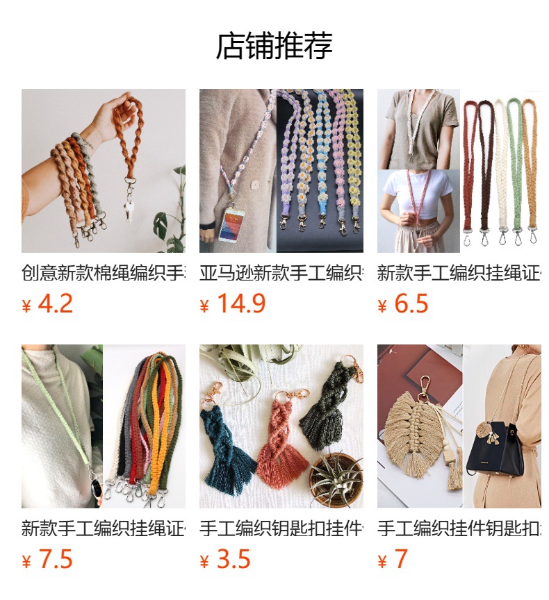 Amazon nueva cuerda de algodón caliente tejido teléfono móvil cordón bolsa cordón nueva flor tejida llavero
