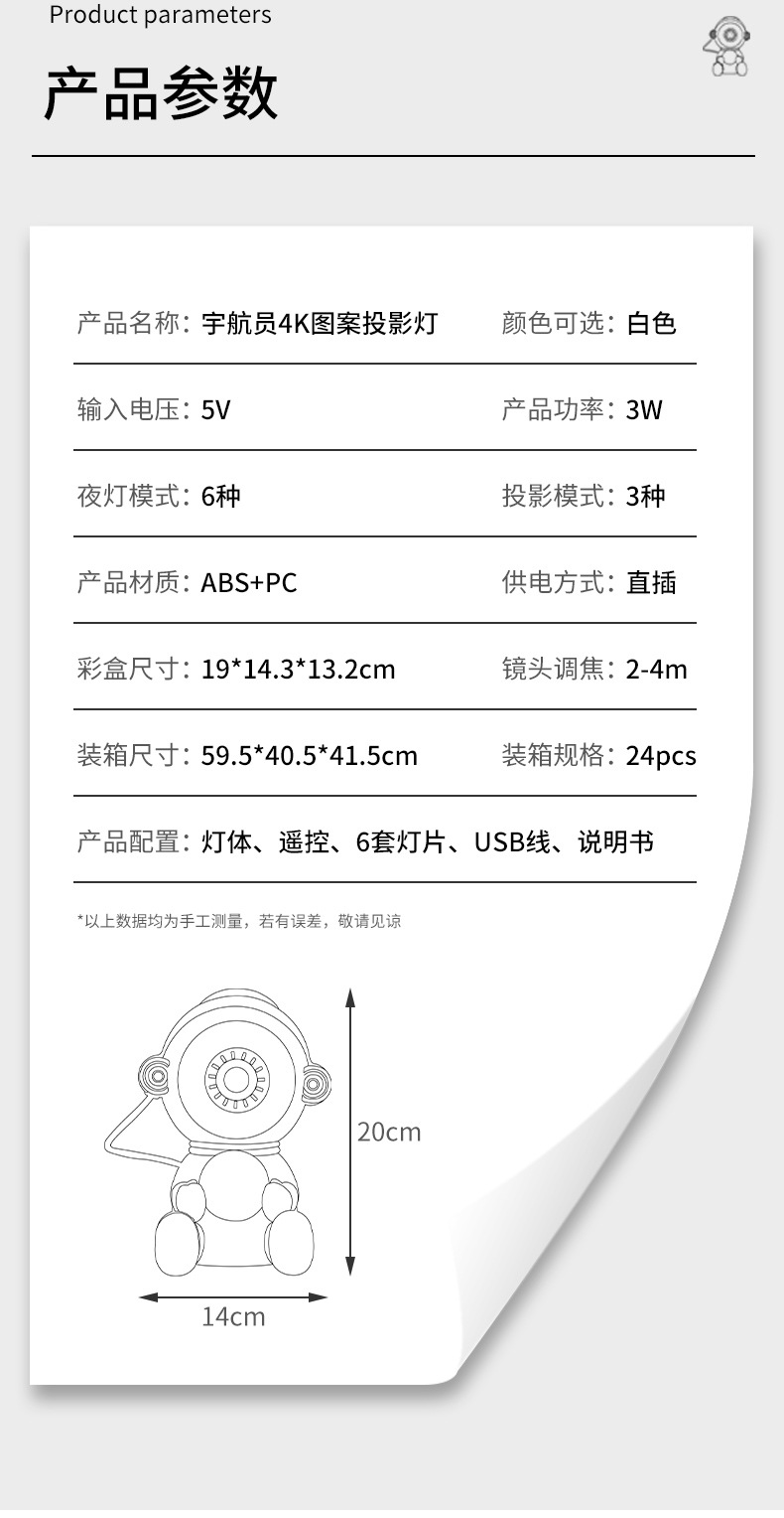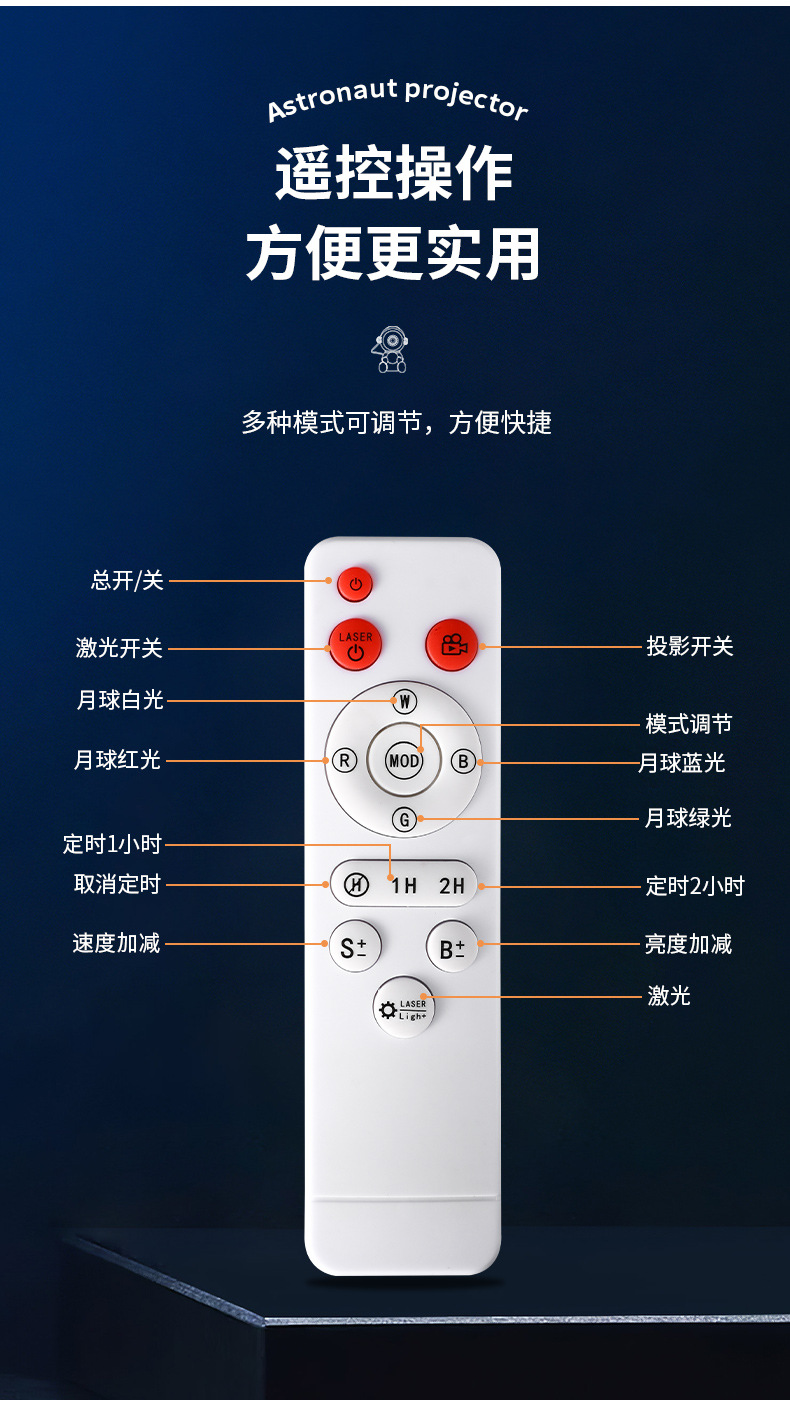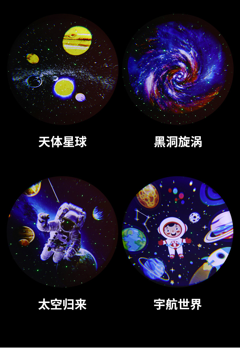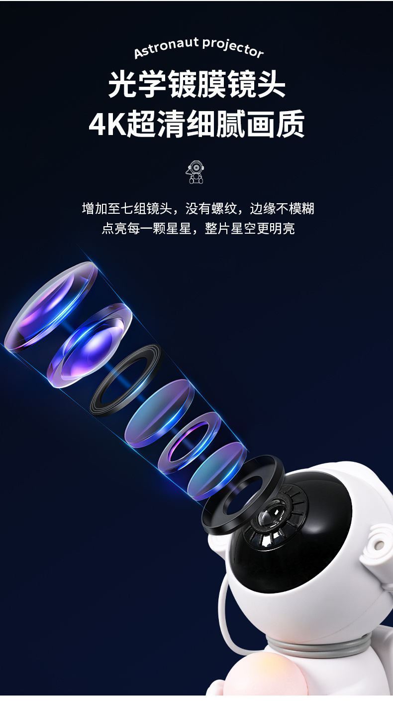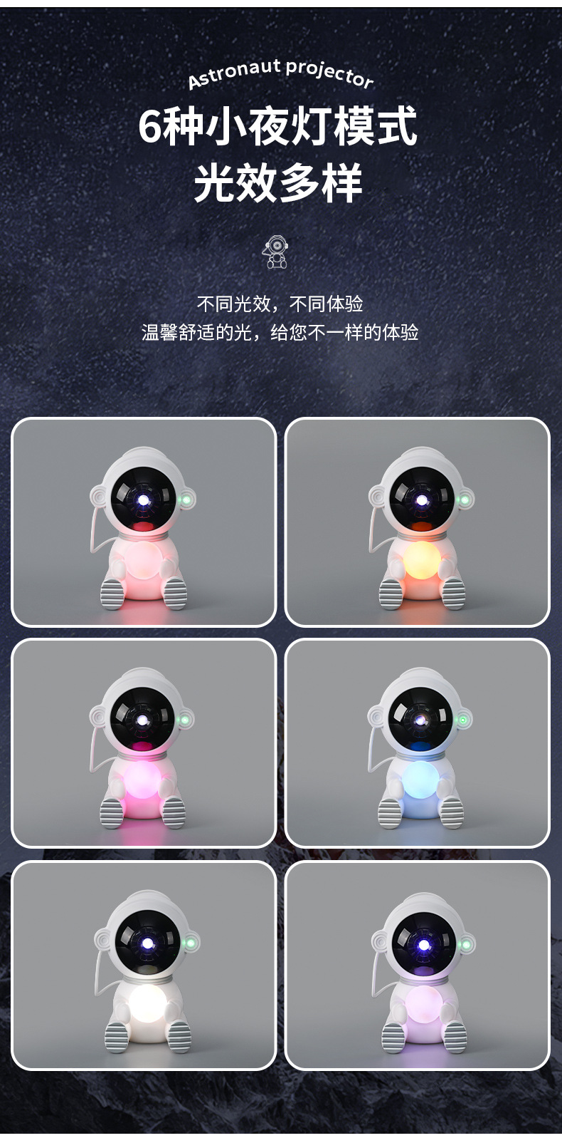 | Color de luz | Proyector del astronauta (máquina de la tarjeta de la película),Bluetooth música luz estrellada,Lámpara de proyección de astronauta |