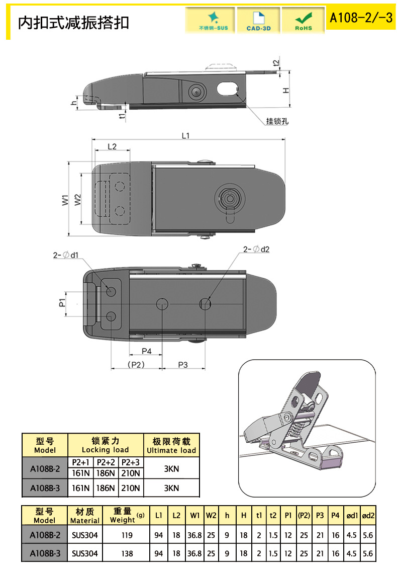 FUENTE de fábrica de acero inoxidable hebilla de boca plana caja del Gabinete eléctrico hebilla interior nave médica equipo mecánico cerradura industrial