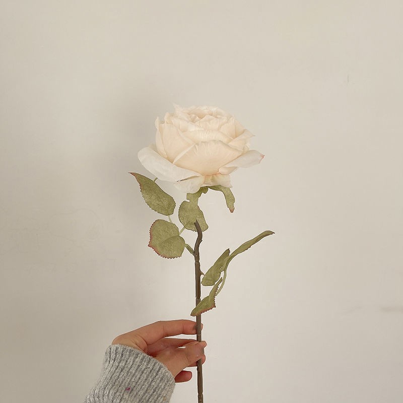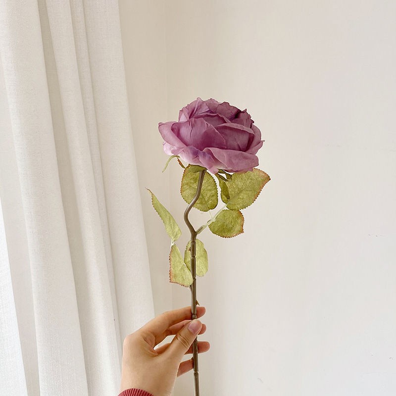 Flor artificial vintage quemado borde Rosa sola flor falsa decoración del hogar foto apoyos florero decoración artificial Flor de plástico
