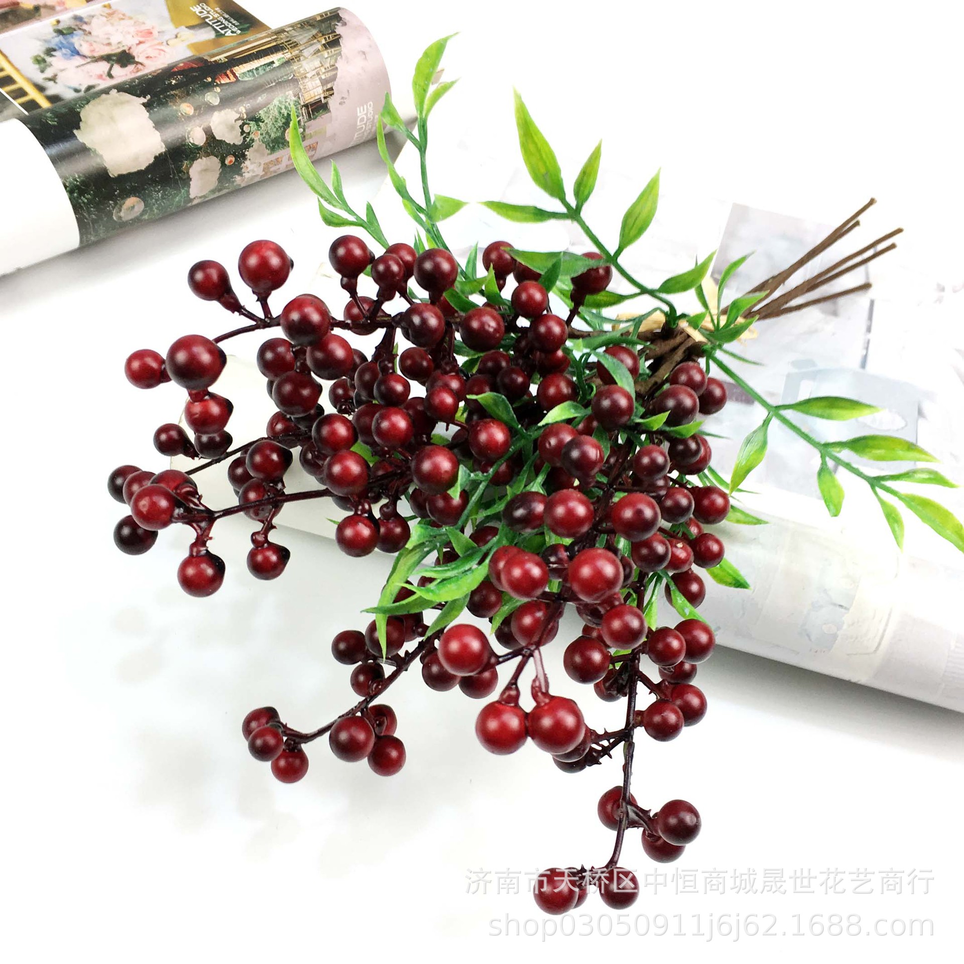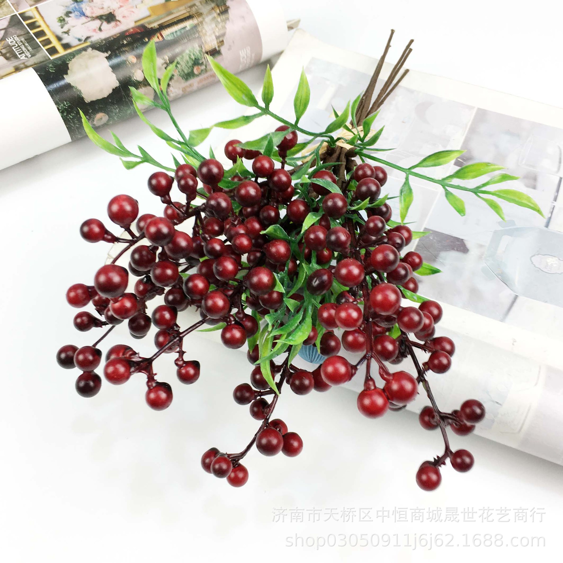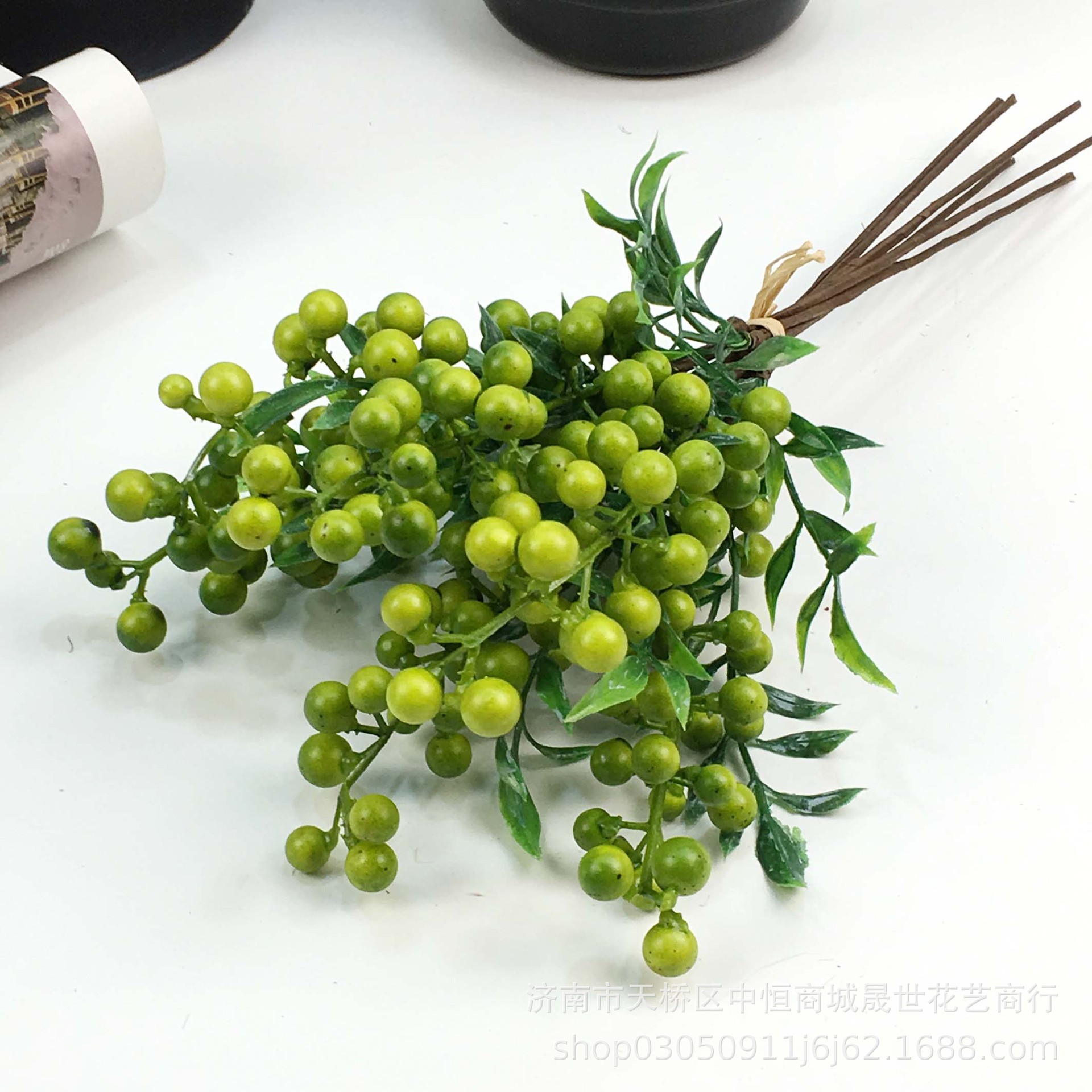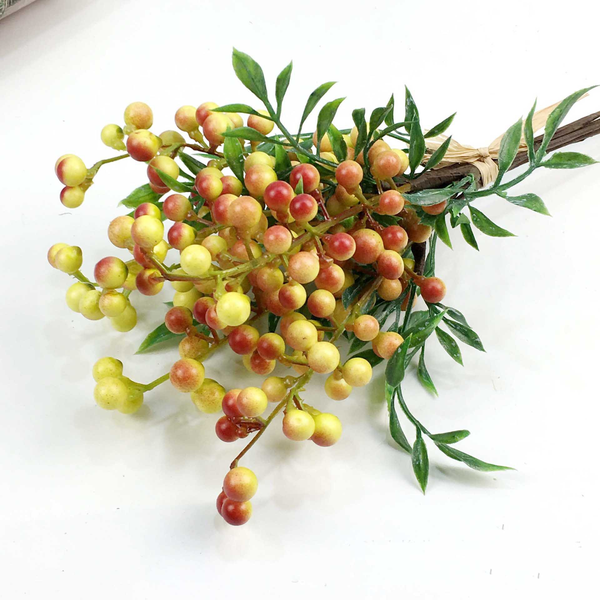 尺寸:整枝长约33厘米、6枝组合、每支有一组叶子、一串果子、大约30个小果、小果直径约1厘米枝干长约15.5厘米