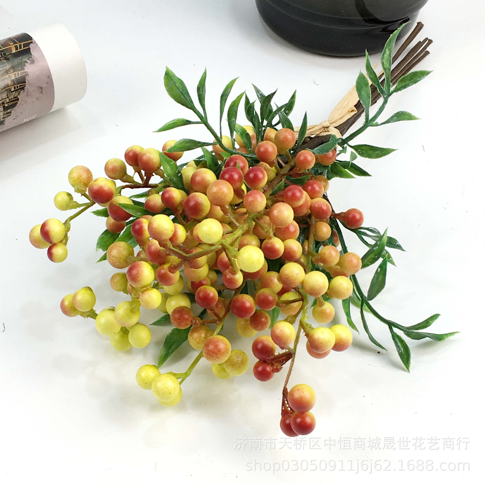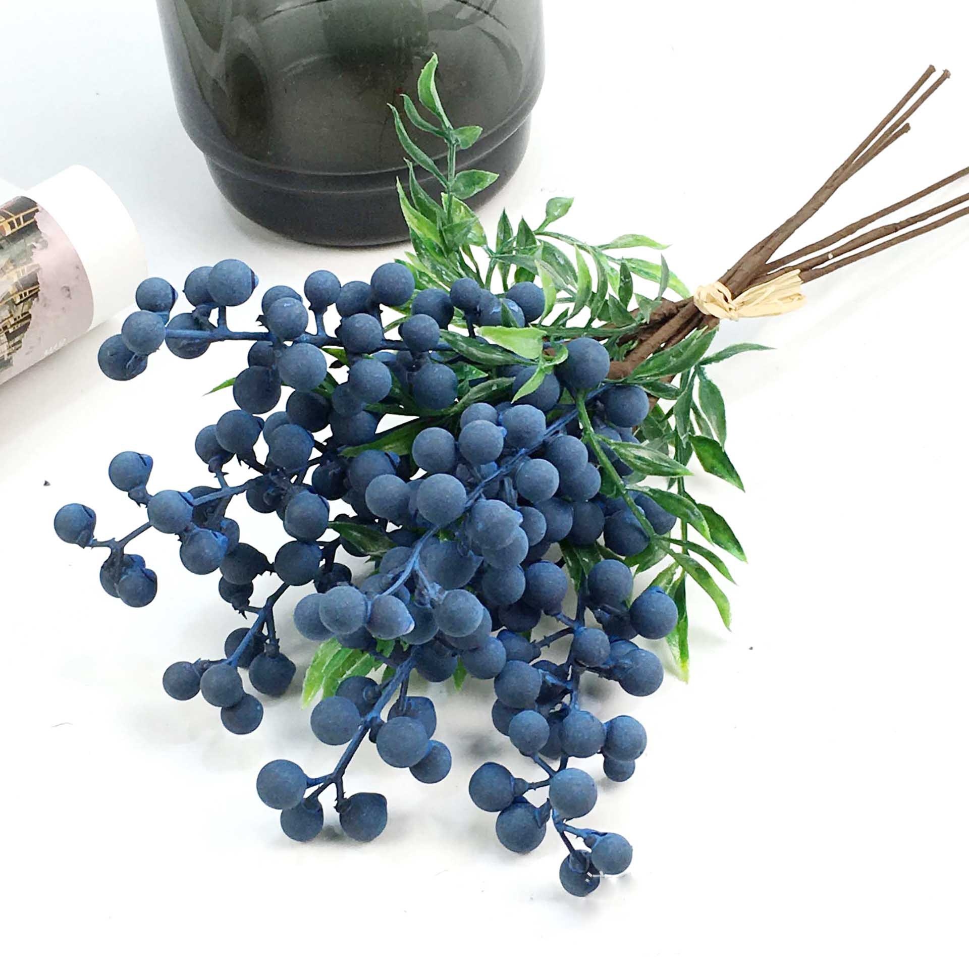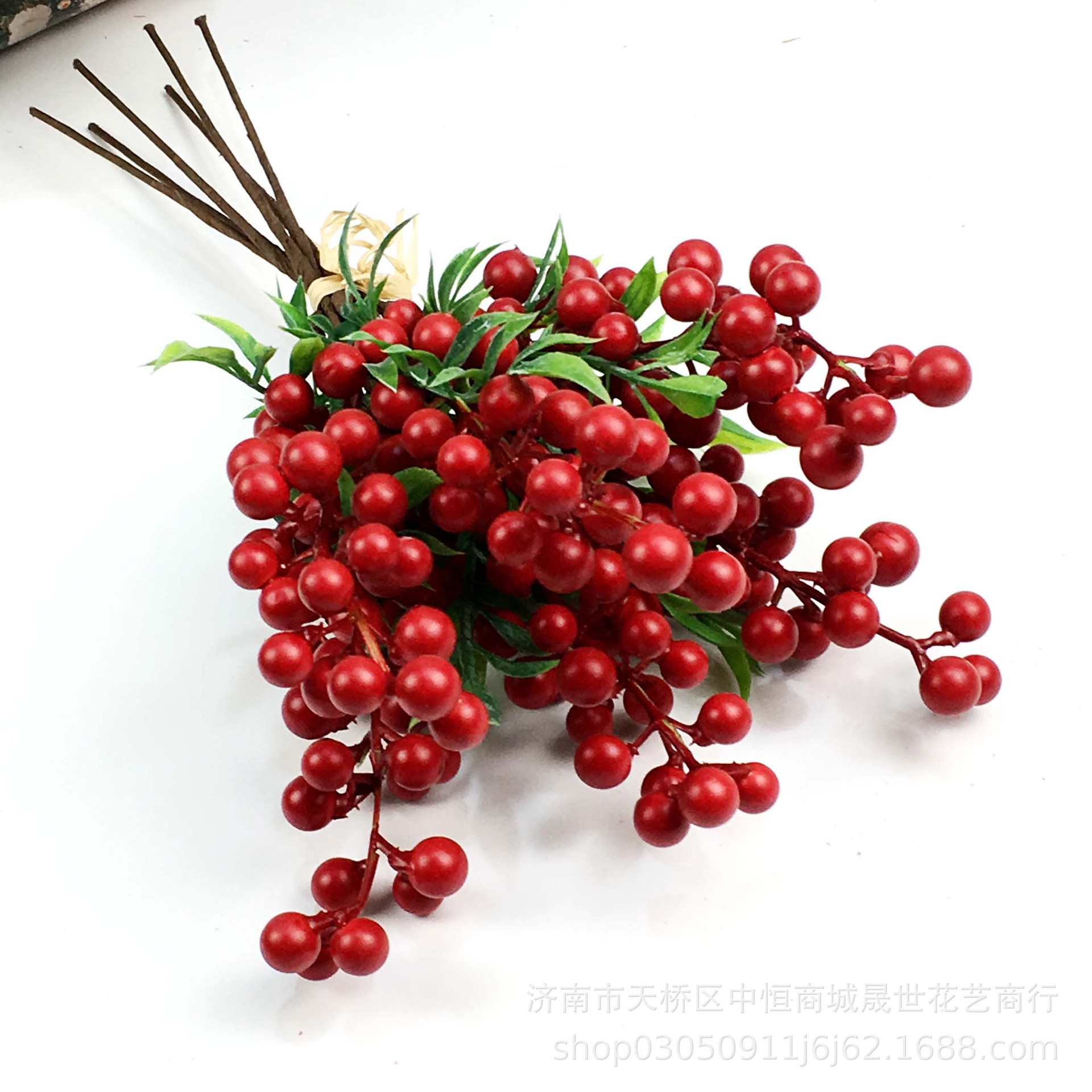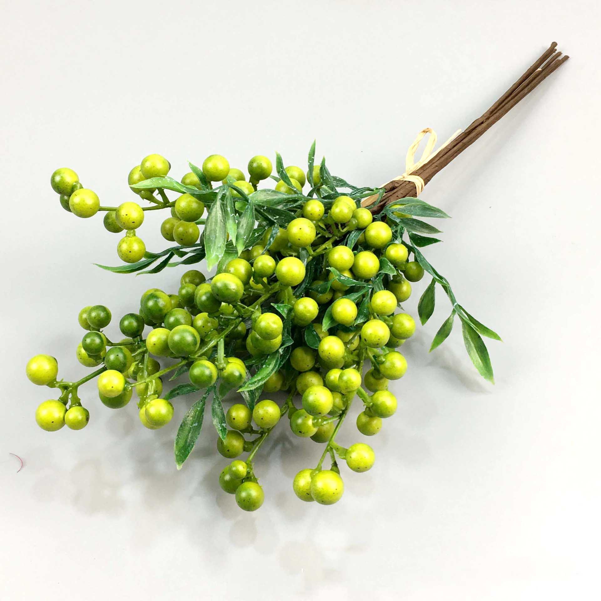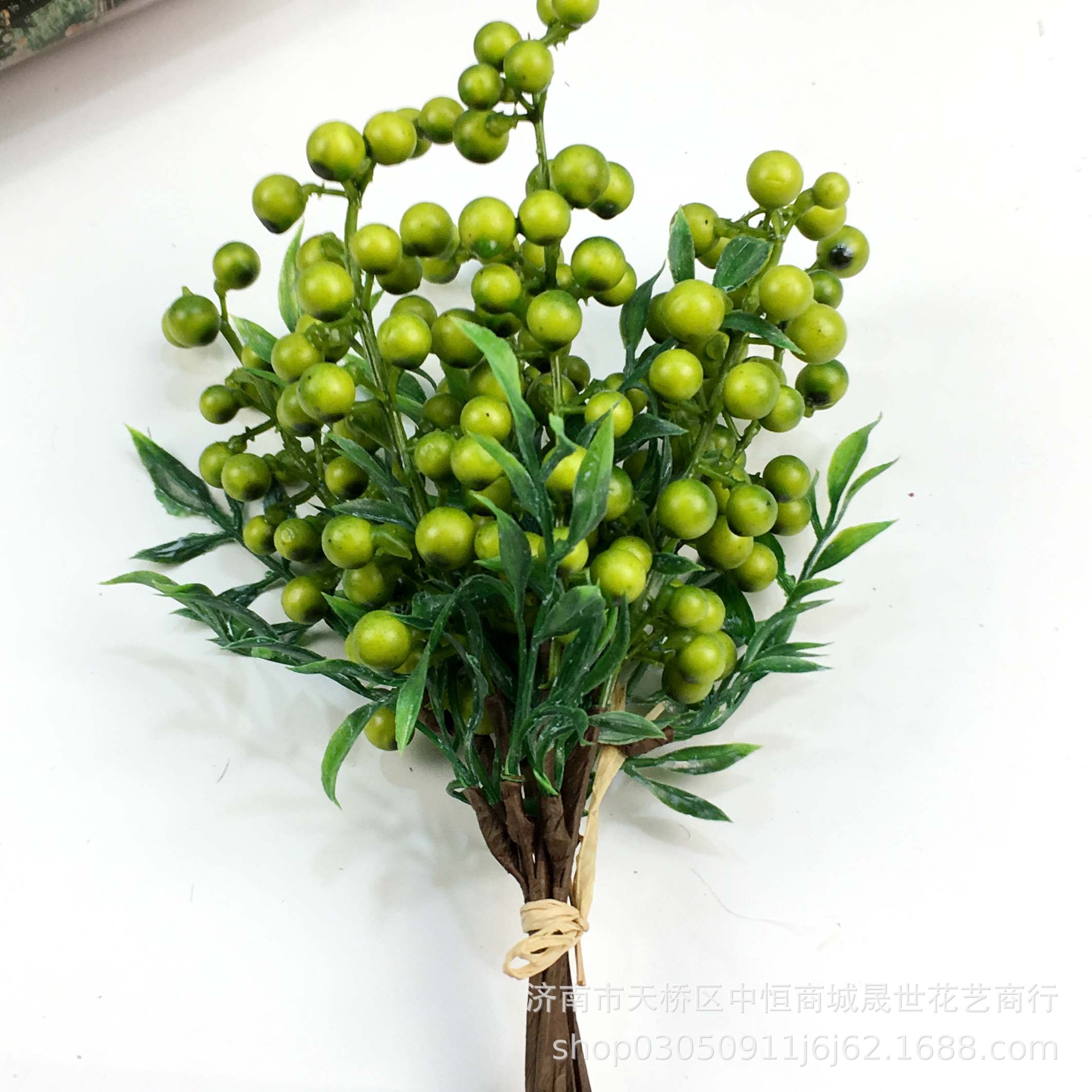 尺寸:整枝长约33厘米、6枝组合、每支有一组叶子、一串果子、大约30个小果、小果直径约1厘米枝干长约15.5厘米