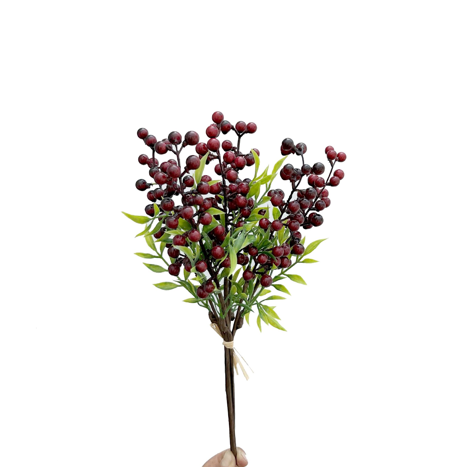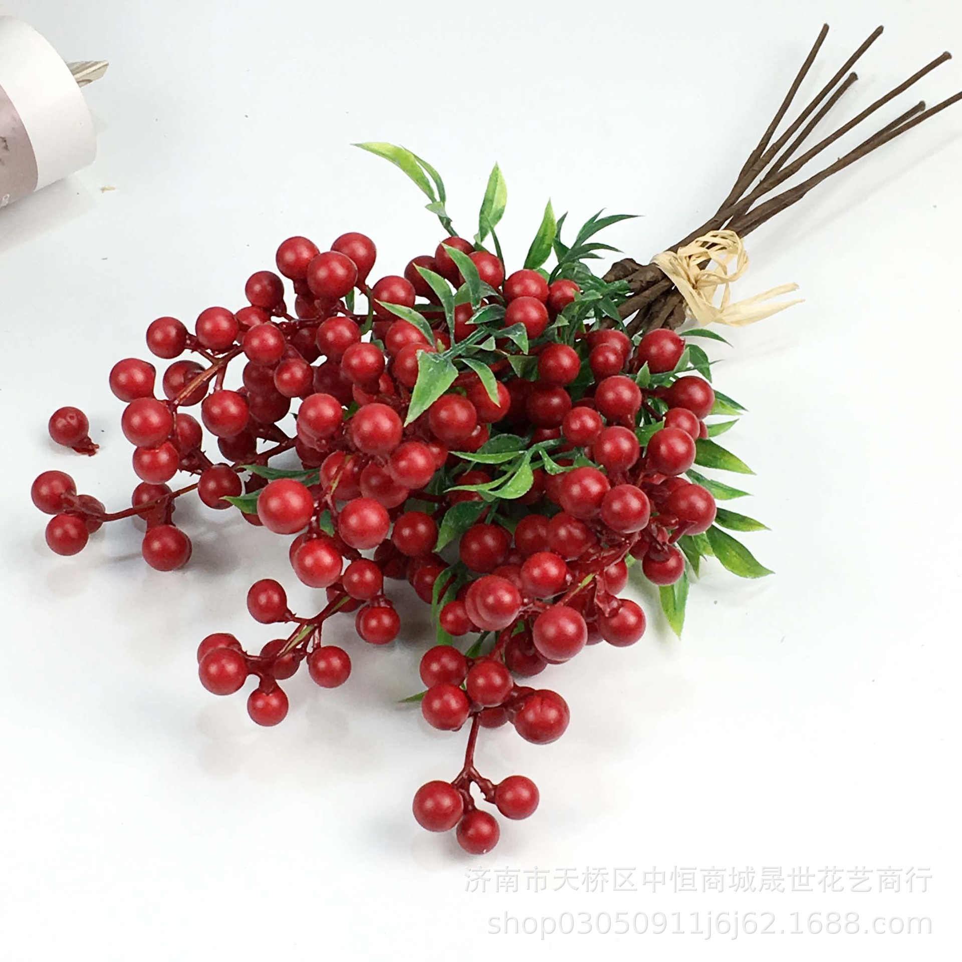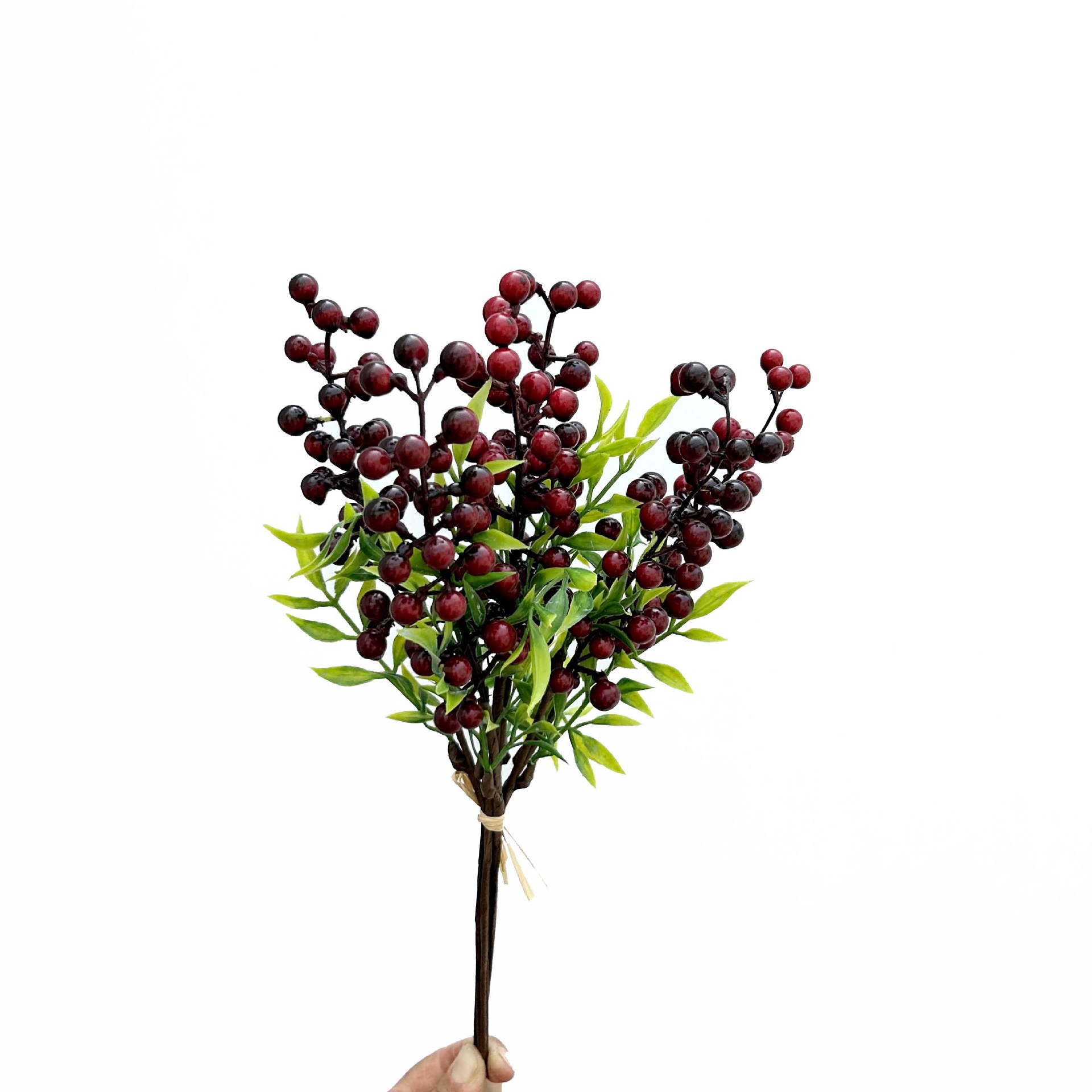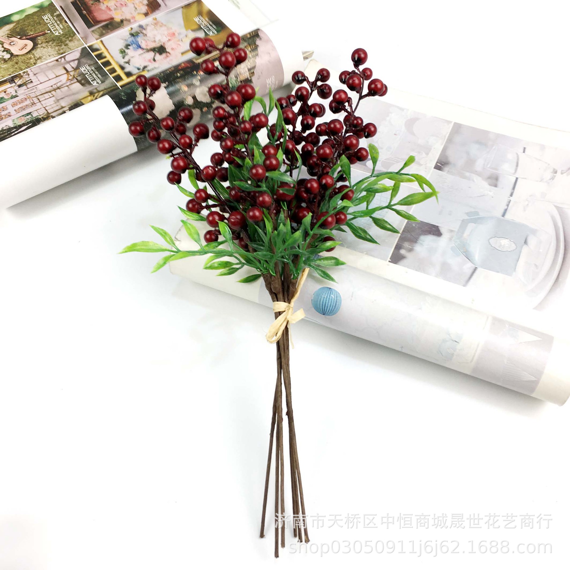 尺寸:整枝长约33厘米、6枝组合、每支有一组叶子、一串果子、大约30个小果、小果直径约1厘米枝干长约15.5厘米
