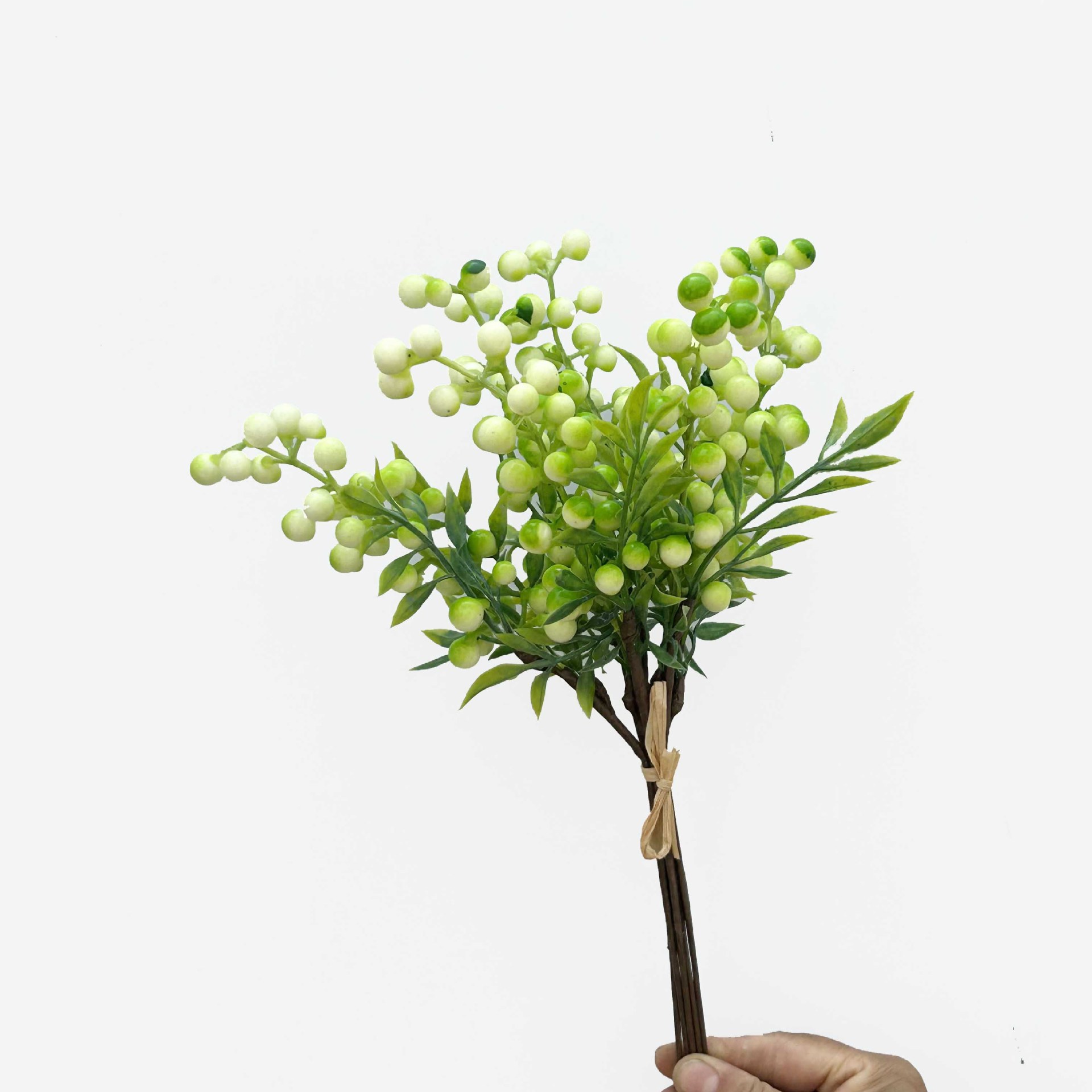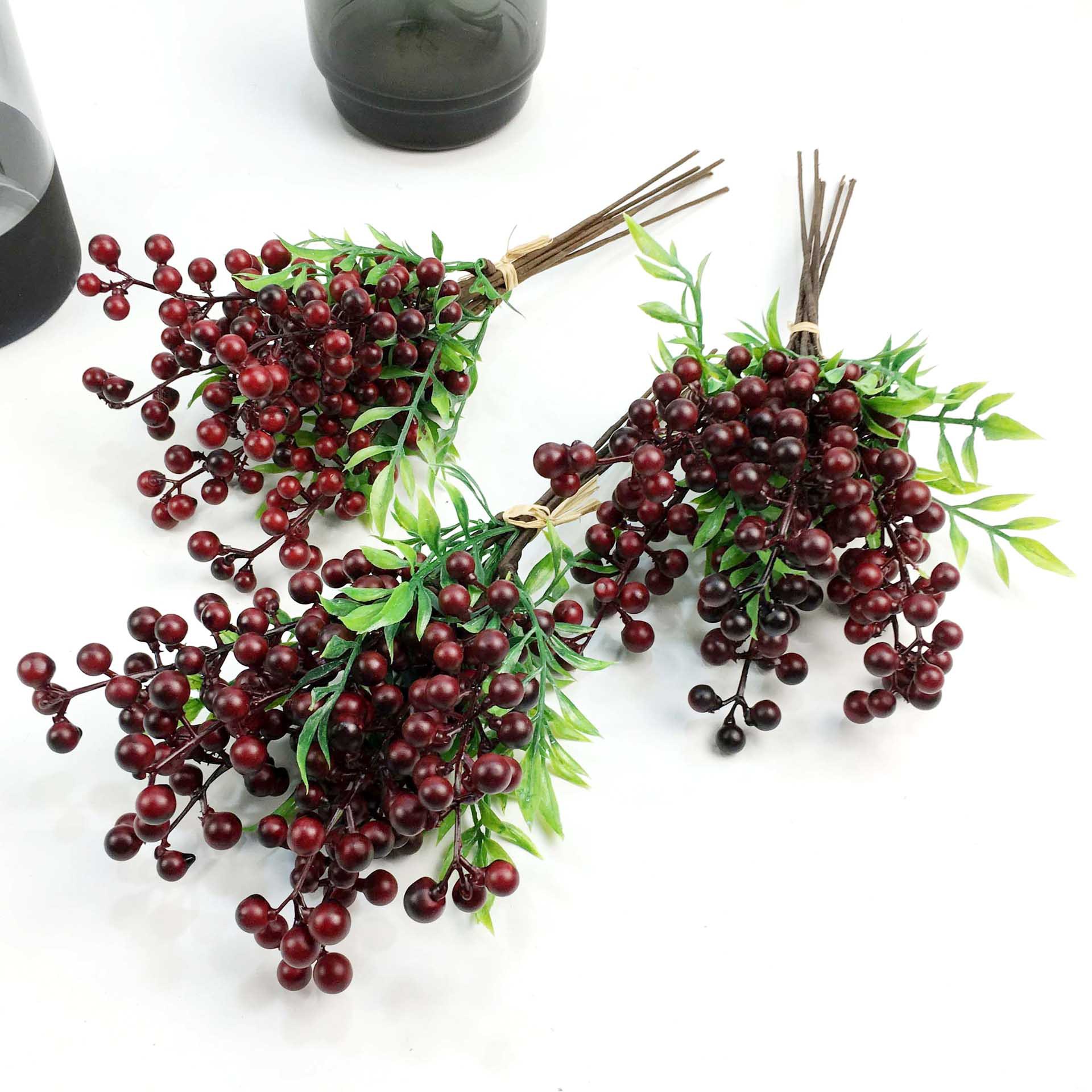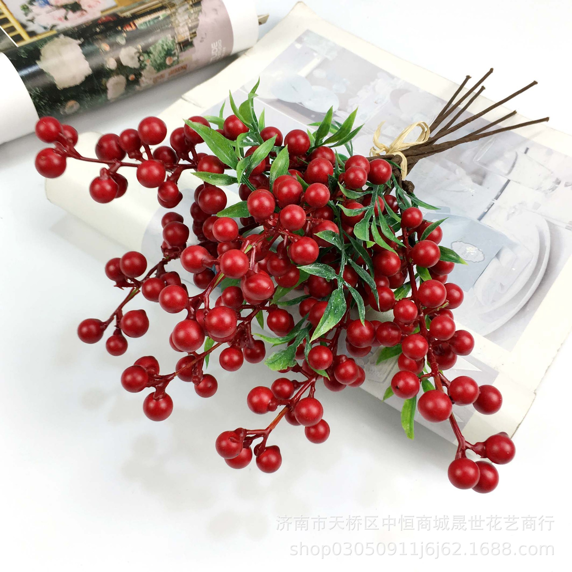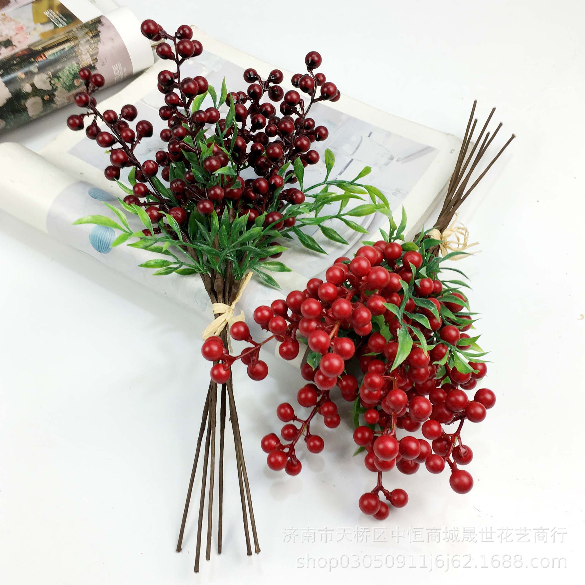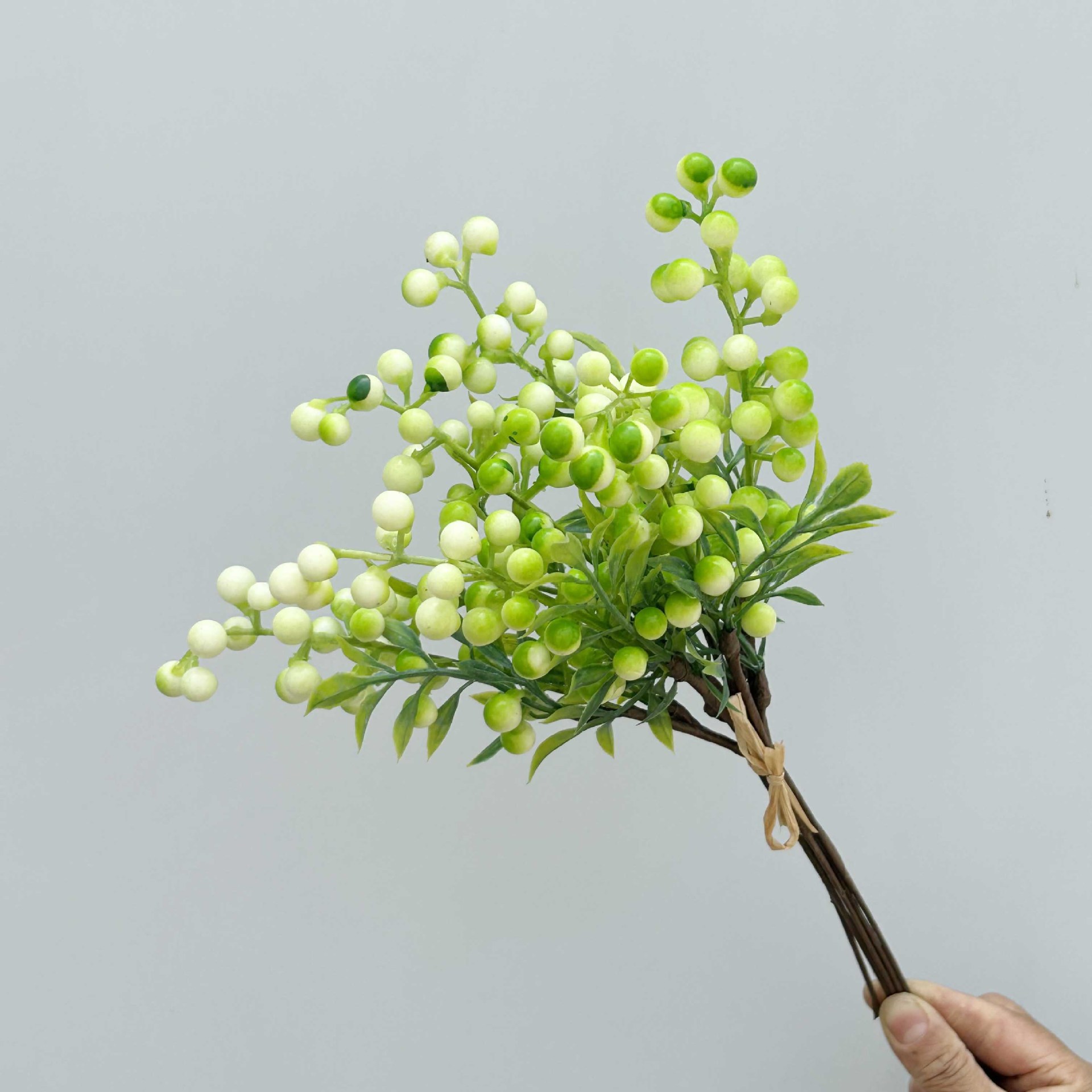 尺寸:整枝长约33厘米、6枝组合、每支有一组叶子、一串果子、大约30个小果、小果直径约1厘米枝干长约15.5厘米