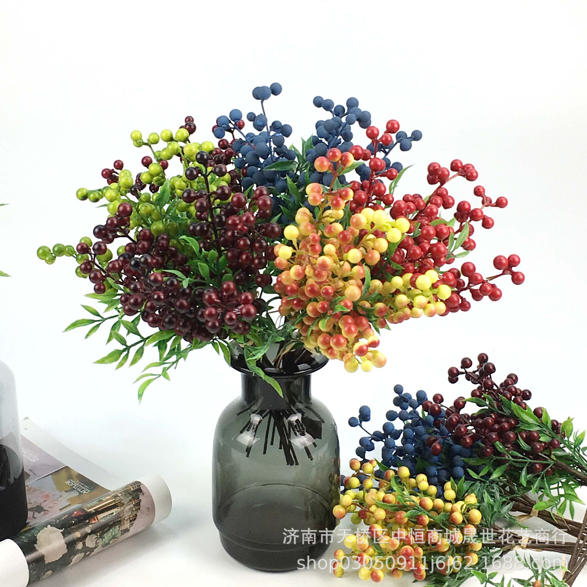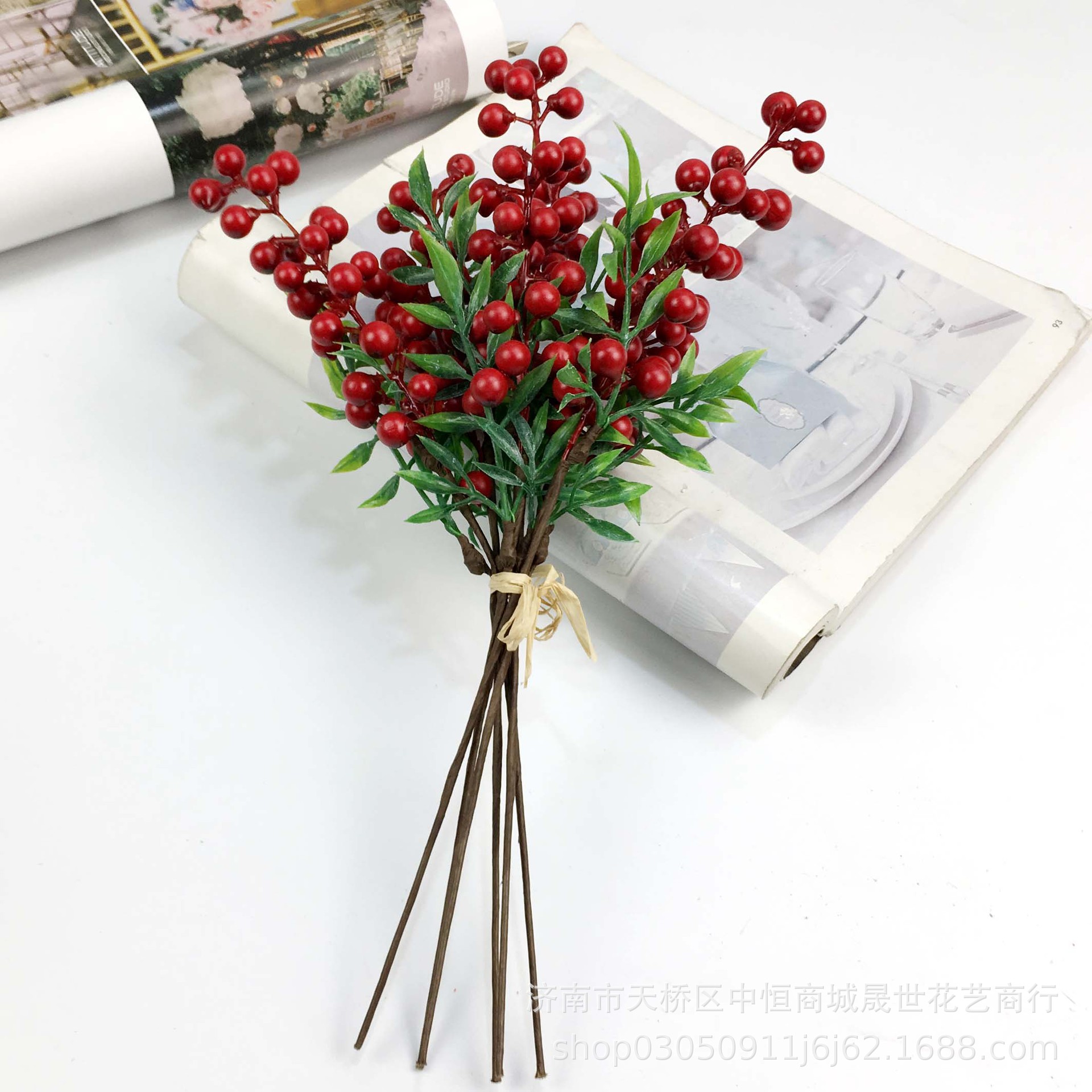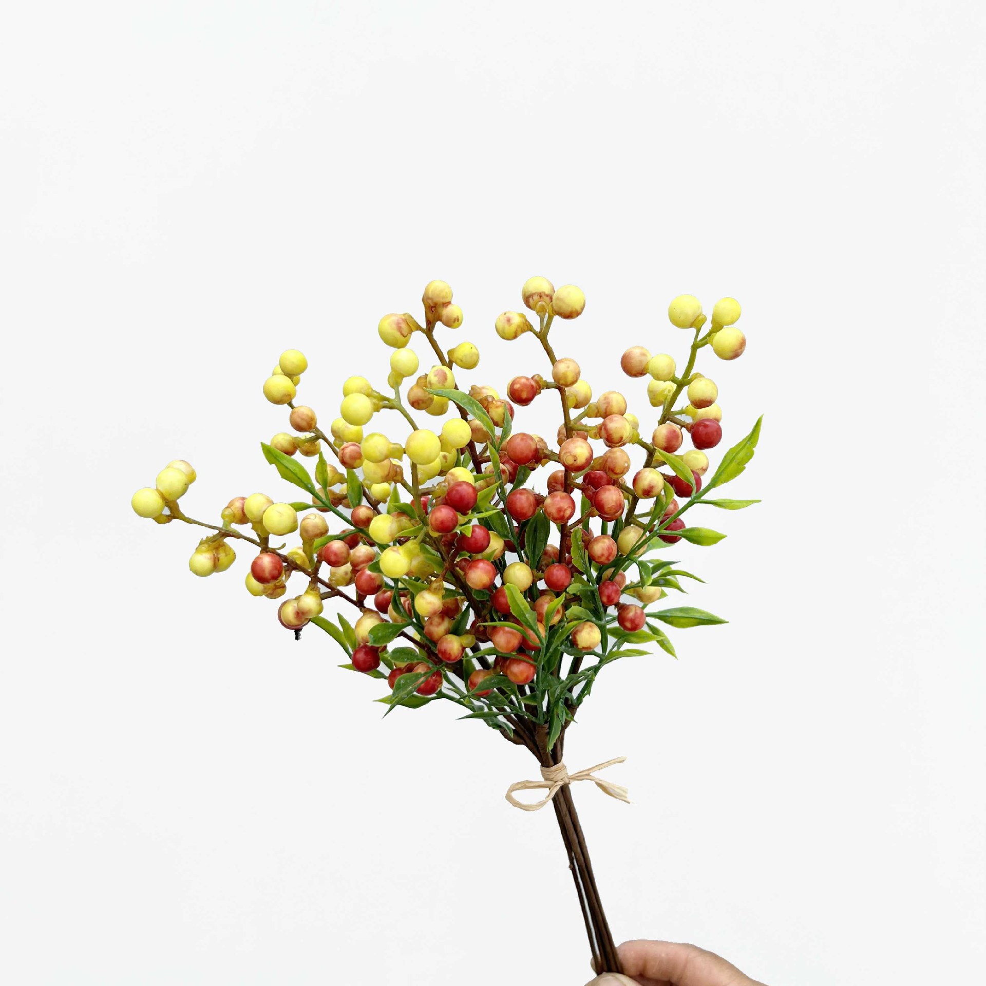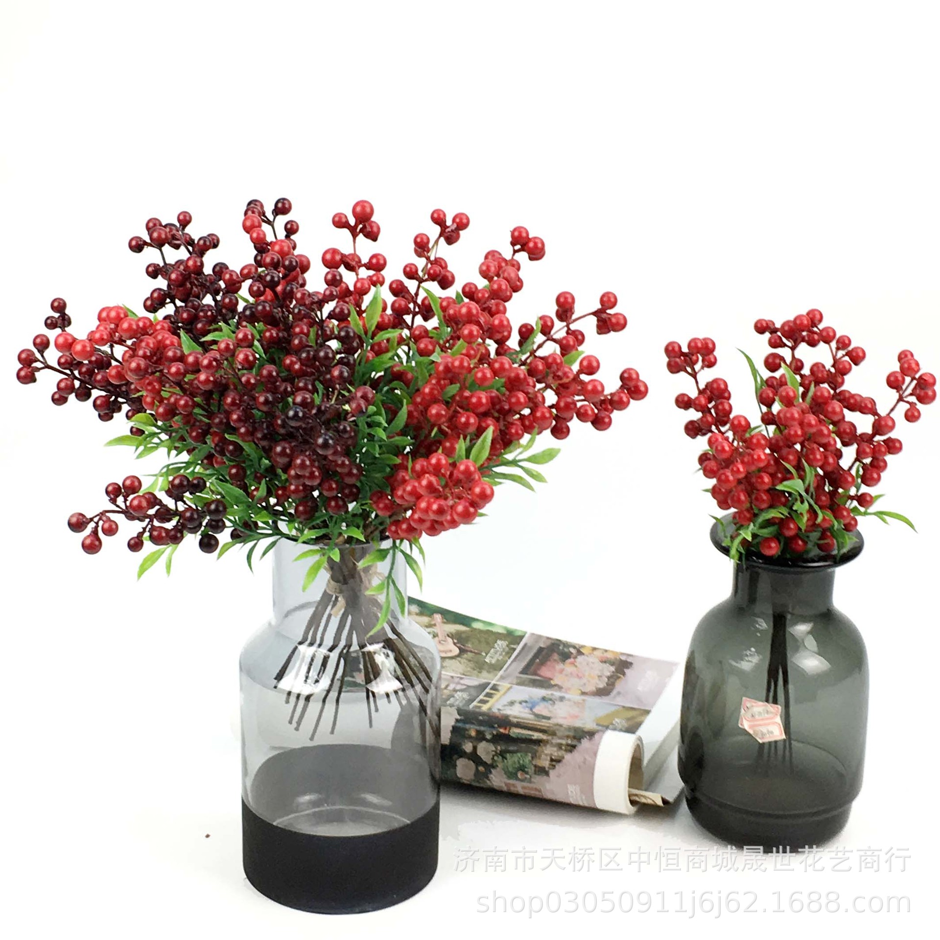 尺寸:整枝长约33厘米、6枝组合、每支有一组叶子、一串果子、大约30个小果、小果直径约1厘米枝干长约15.5厘米