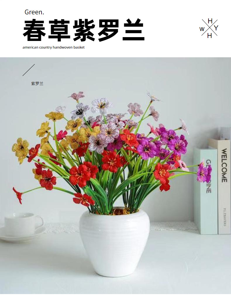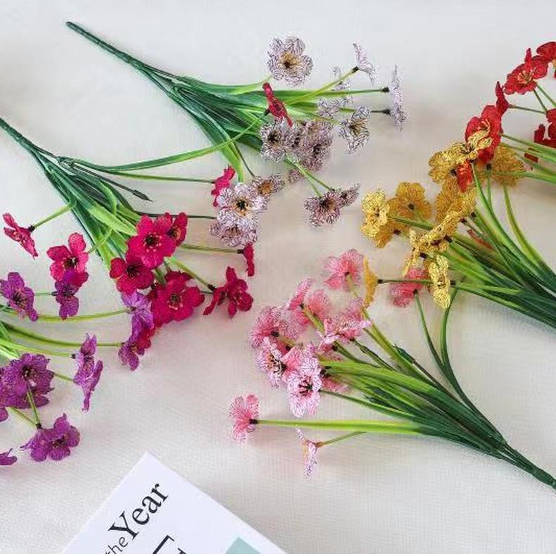 Planta verde artificial de cinco cabezas de primavera hierba Violeta artificial flor artificial decoración de flores de plástico boda Hotel Oficina