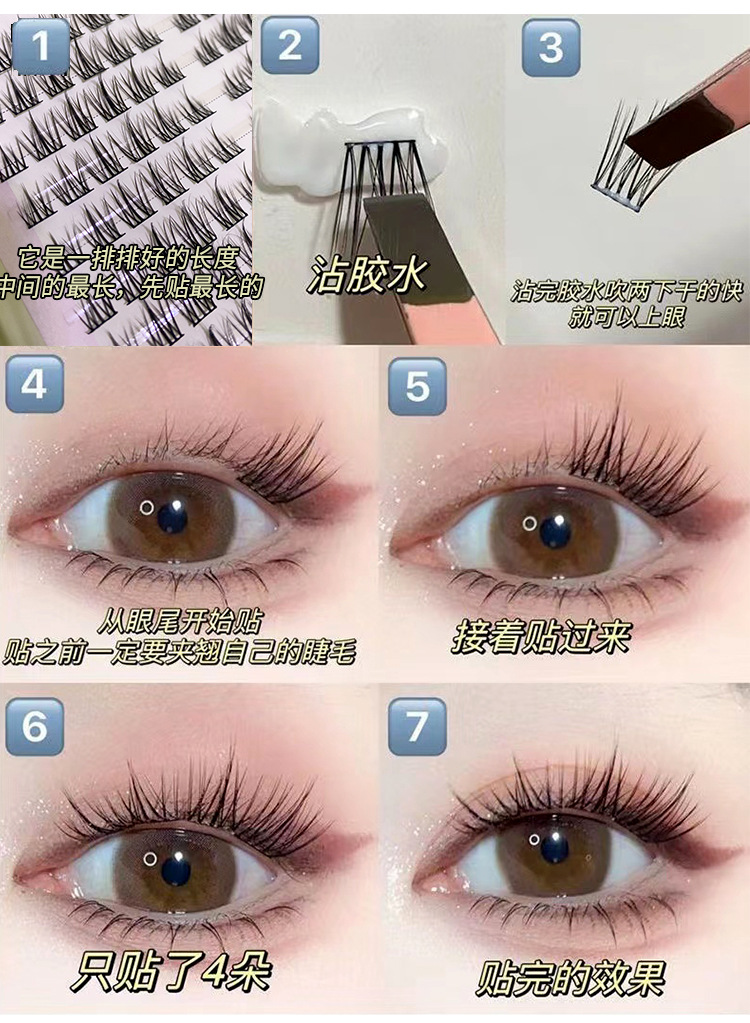 Pestañas lindas cuidadosamente seleccionadas, pestañas postizas de conejito Barbie perezoso, pestañas cómicas fotogénicas naturales para principiantes de un solo grupo