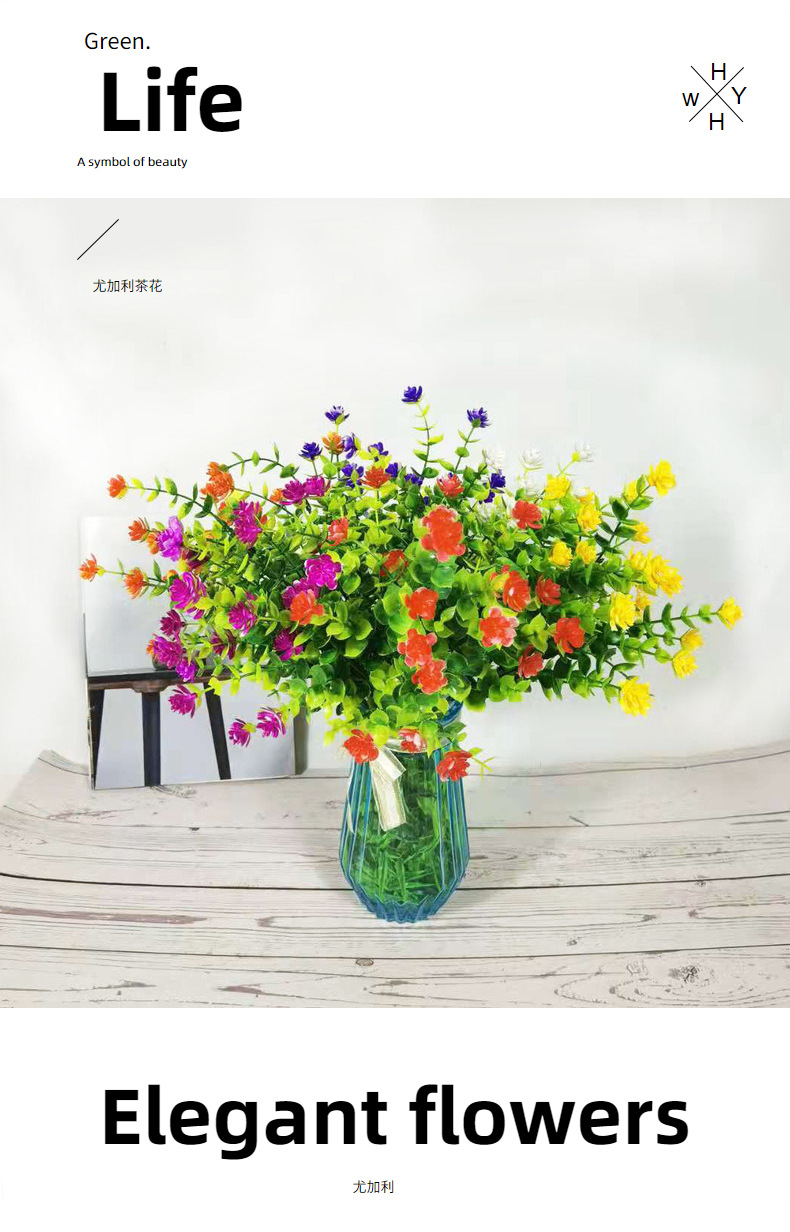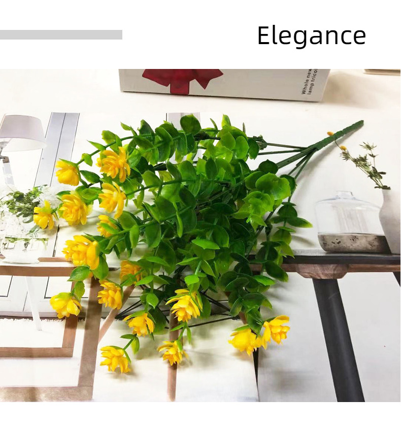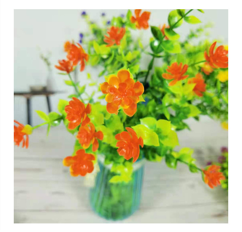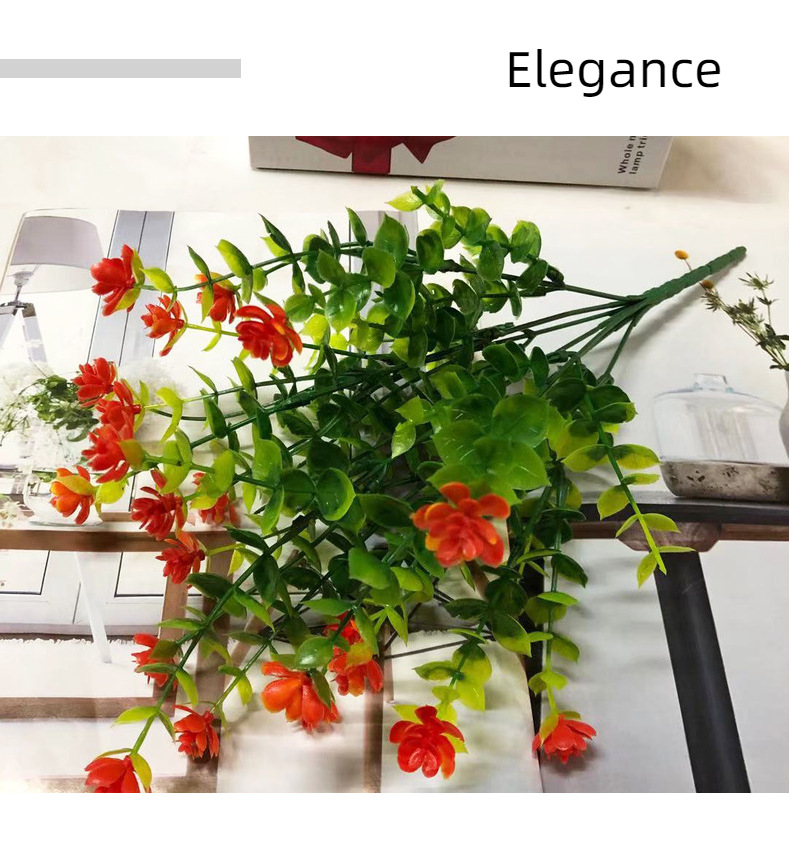 AliExpress Venta caliente artificial planta verde 7 cabezas 35 malla eucalipto Camelia flor artificial Flor de plástico flor decorativa