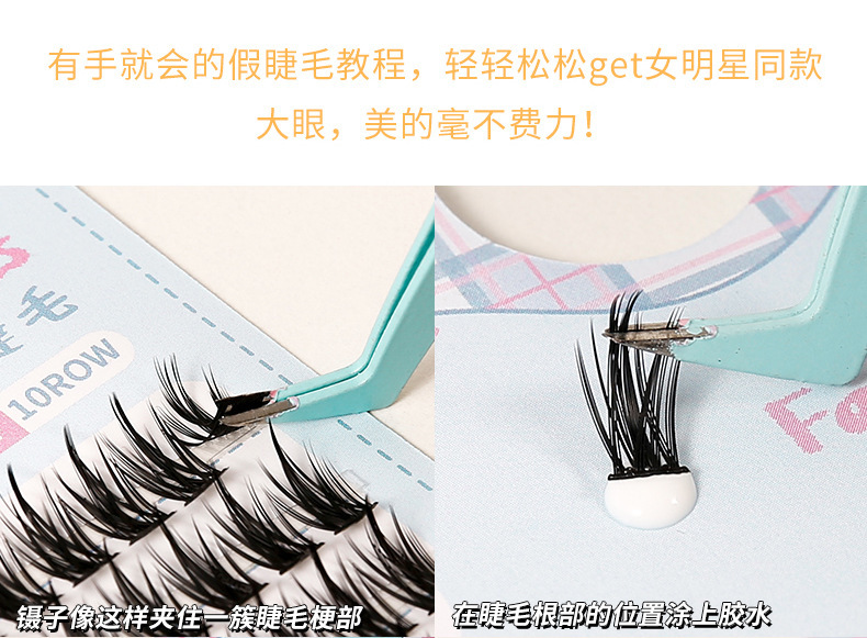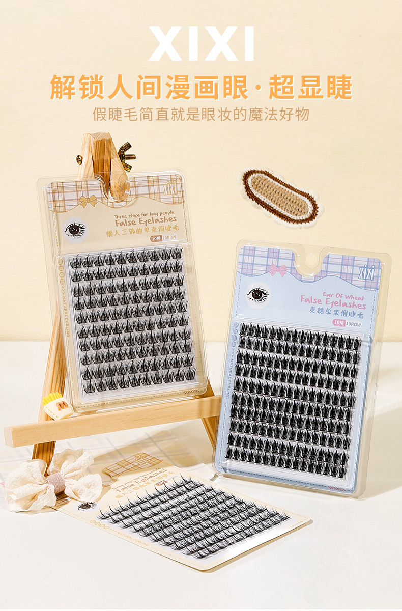 Xixi superior de la oreja de trigo pestañas postizas 10 filas de gran capacidad de simulación natural gruesa ultra-fino tallo segmentado pestañas para las mujeres