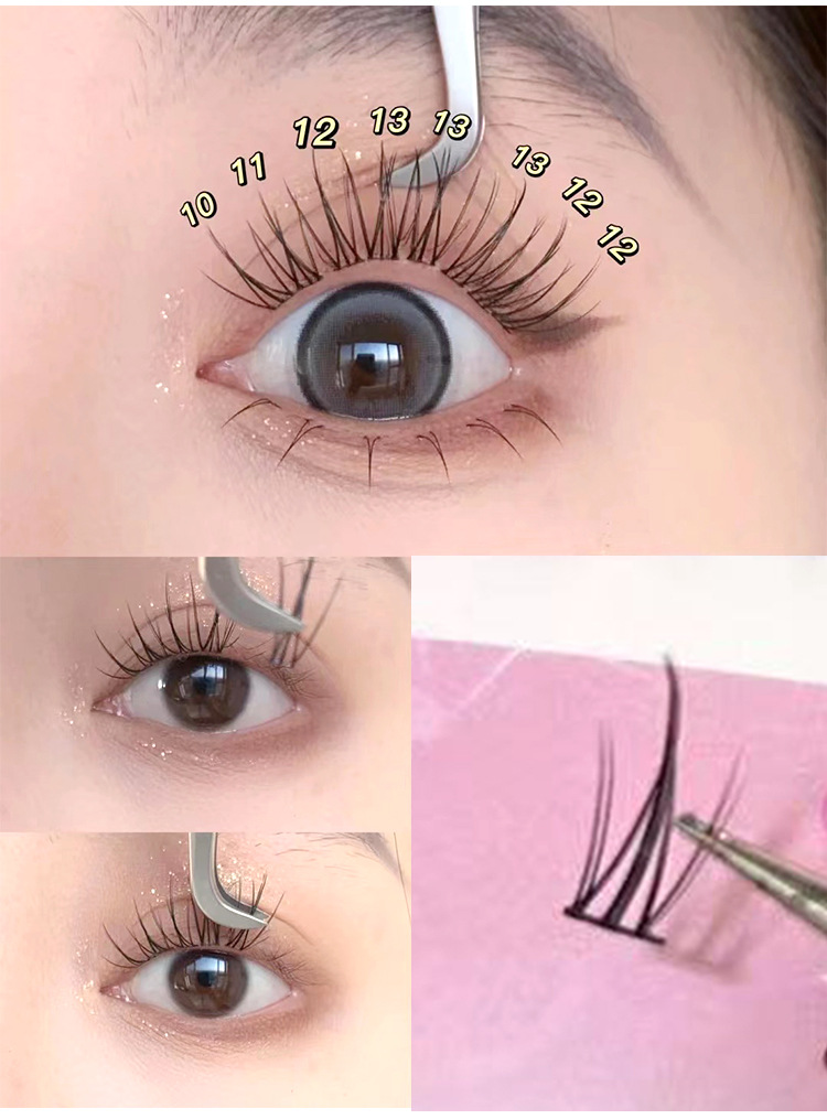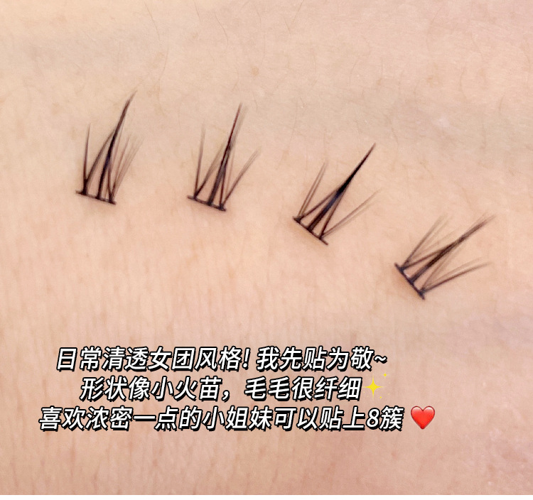 Pestañas inferiores de media luna pequeña segmentadas ~ raíz clara pestañas inferiores de cola de pez natural pestañas segmentadas de tallo fino novato