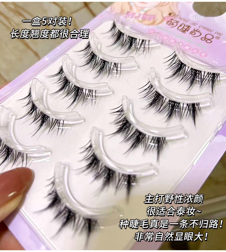 Pestañas lindas Shangpin fishtail par pelo transparente tallo pestañas de una pieza cinco pares naturales gruesas pestañas cómodas suaves