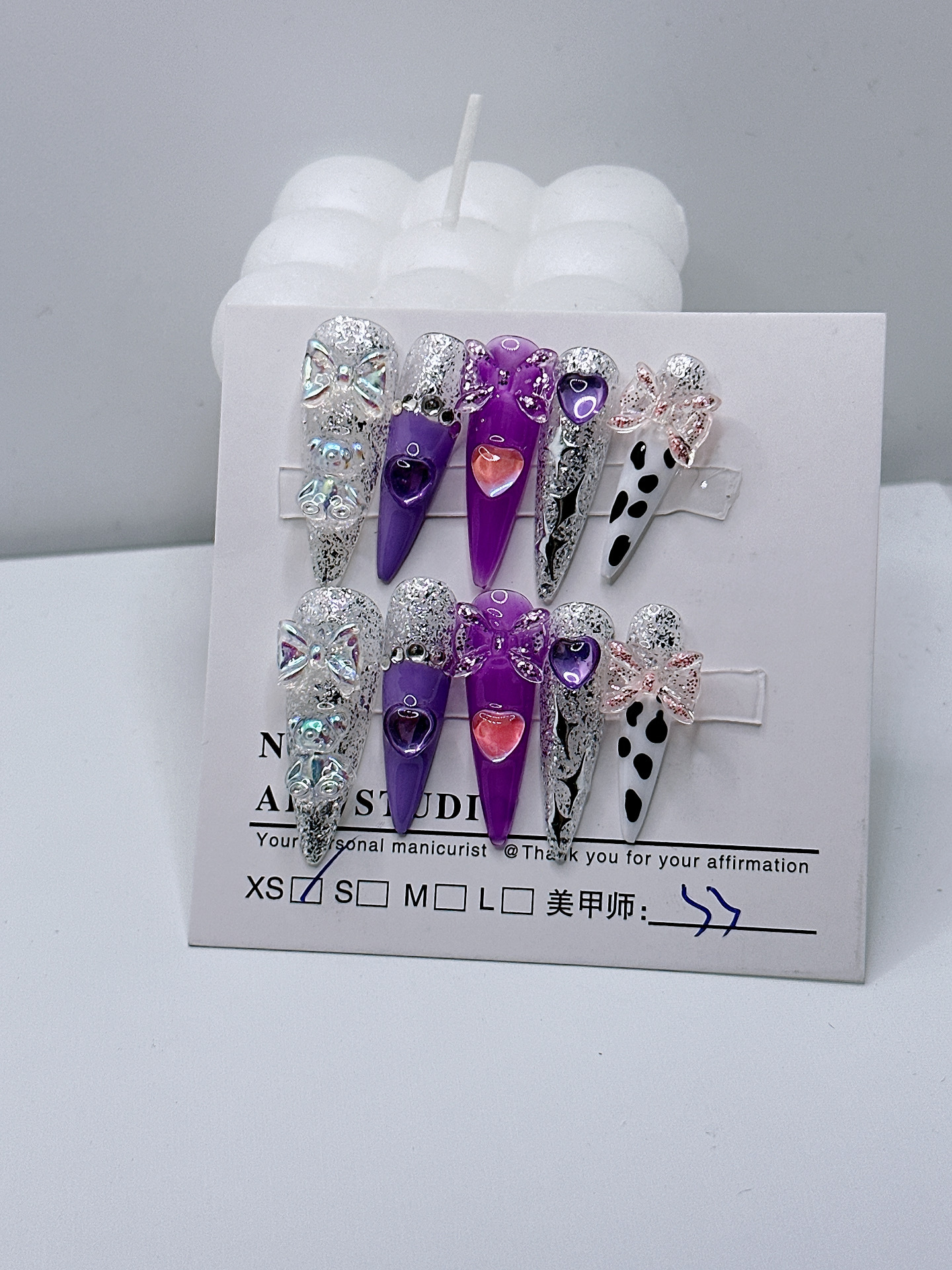 Hecho a mano desgaste de uñas de hielo transparente hidratante Purple Girl corazón japonés dulce uñas parche producto terminado al por mayor