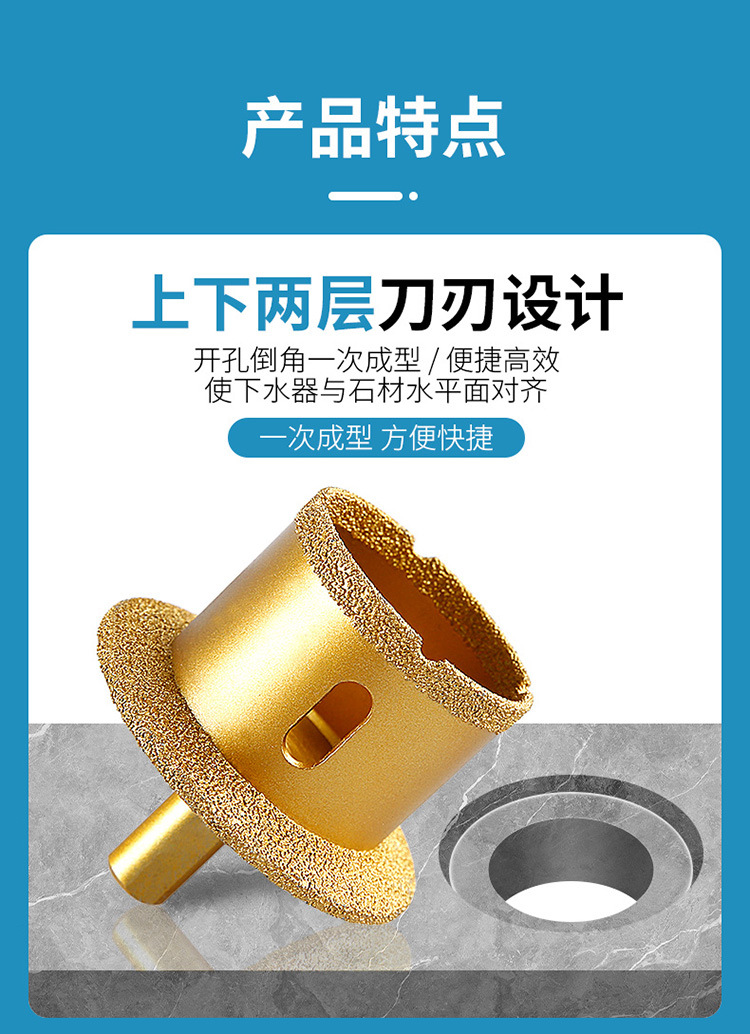 Cuenca agujero abridor downcomer fregadero perforación mármol azulejo de cerámica lavabo diamante doble capa broca de perforación