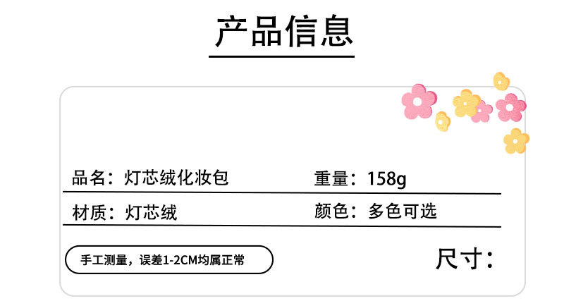 | Artículo No. | Bolsa de cosméticos de pana crema |