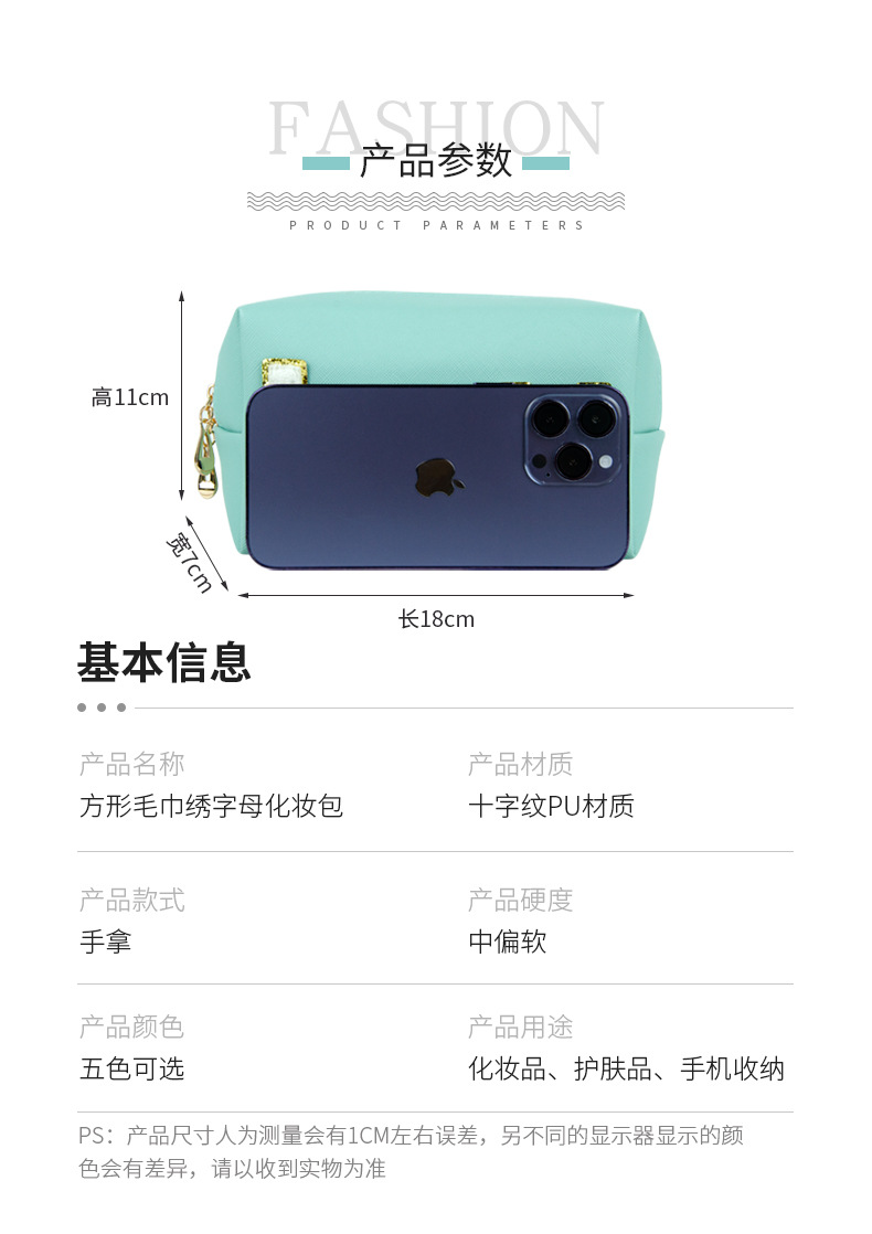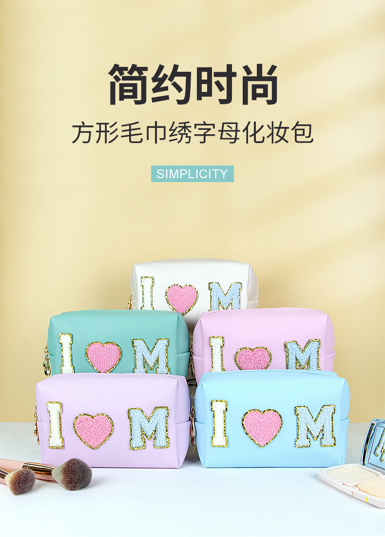 高颜值刺绣字母化妆包ins风小号便携化妆收纳包 cosmetic bag