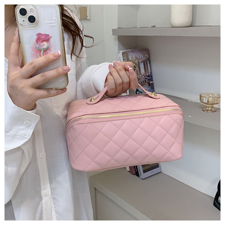 Hilo de bordado de diamantes nueva bolsa de cosméticos de gran capacidad bolsa de almacenamiento de viaje de cosméticos de alto sentido rojo neto lavado femenino