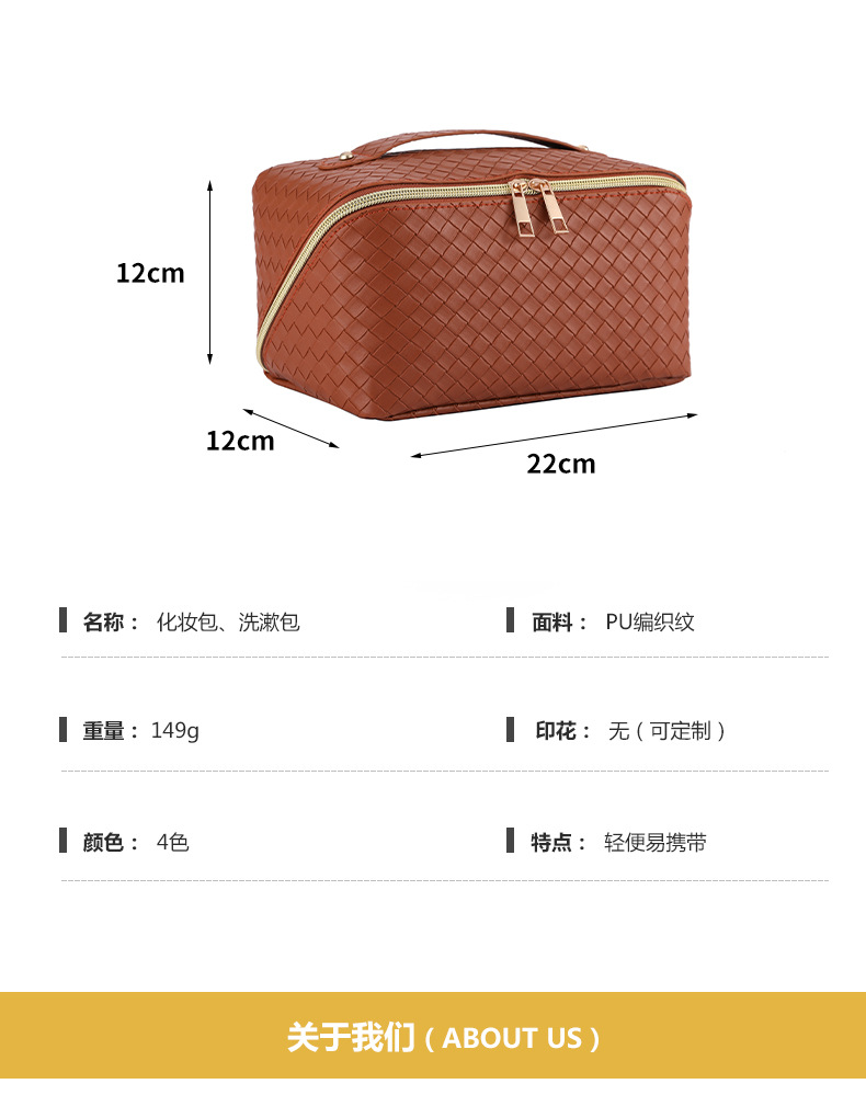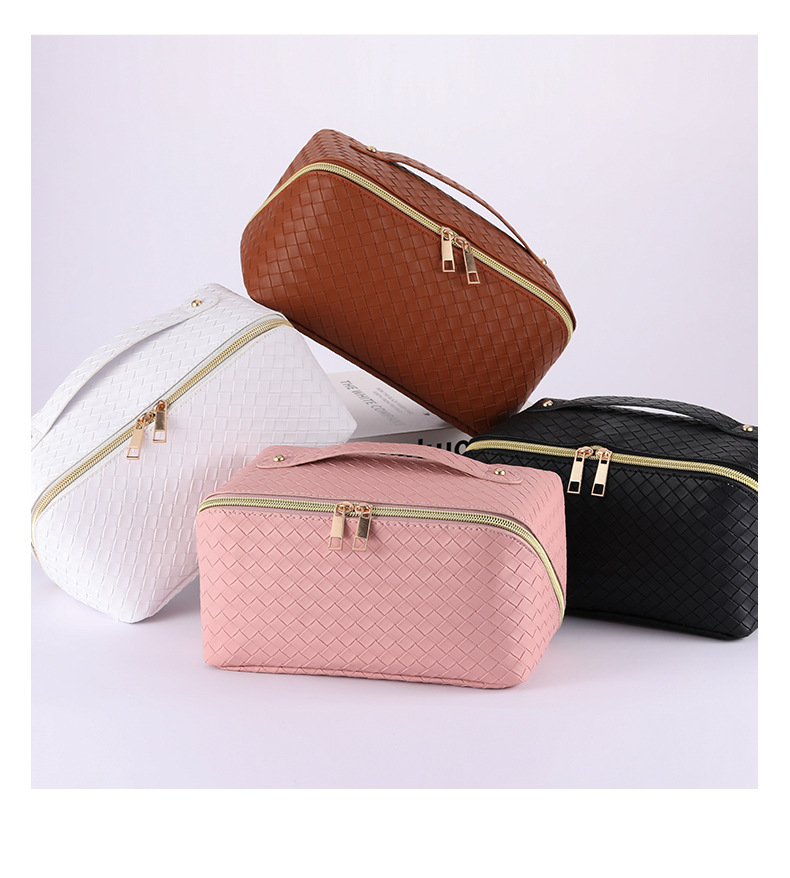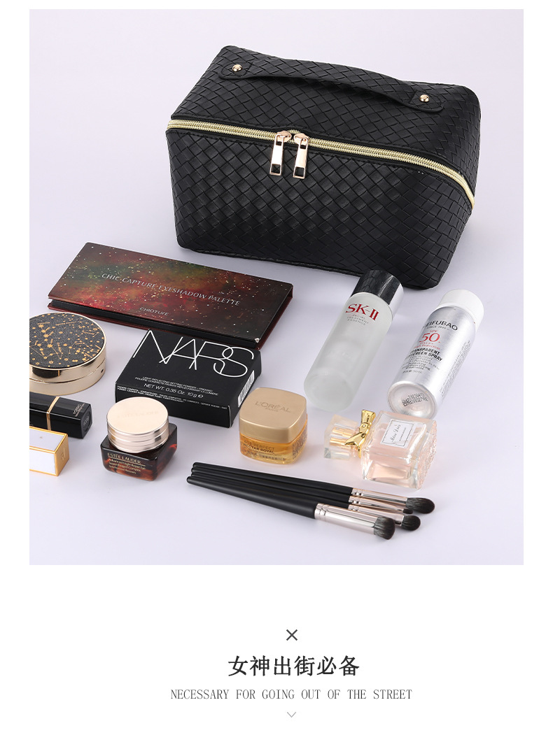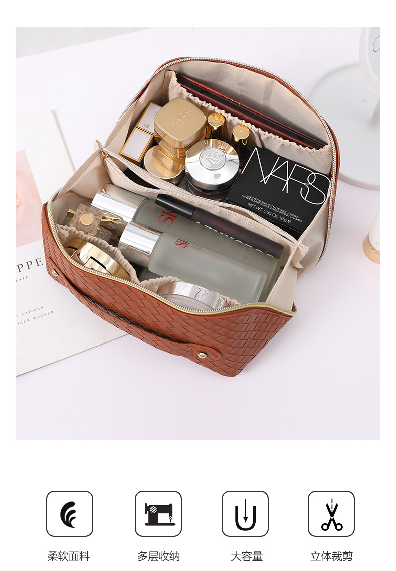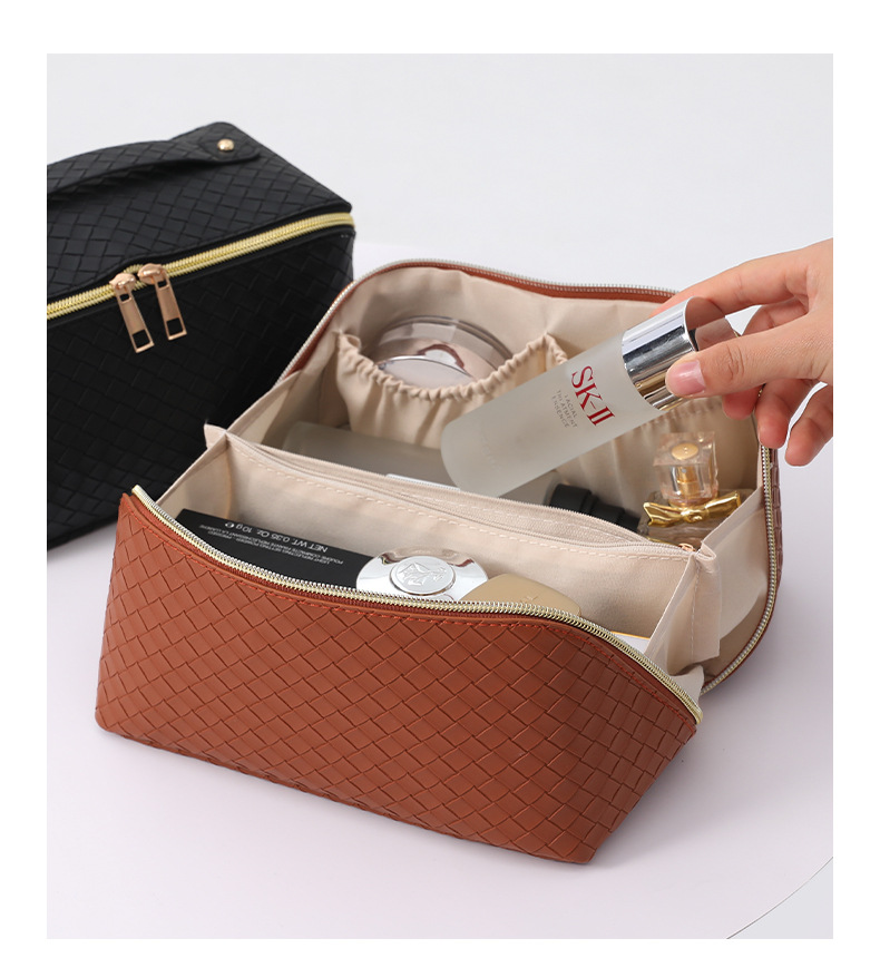 Bolsa de cosméticos de almohada tejida transfronteriza bolsa de almacenamiento de viaje portátil de gran capacidad portátil de cuero