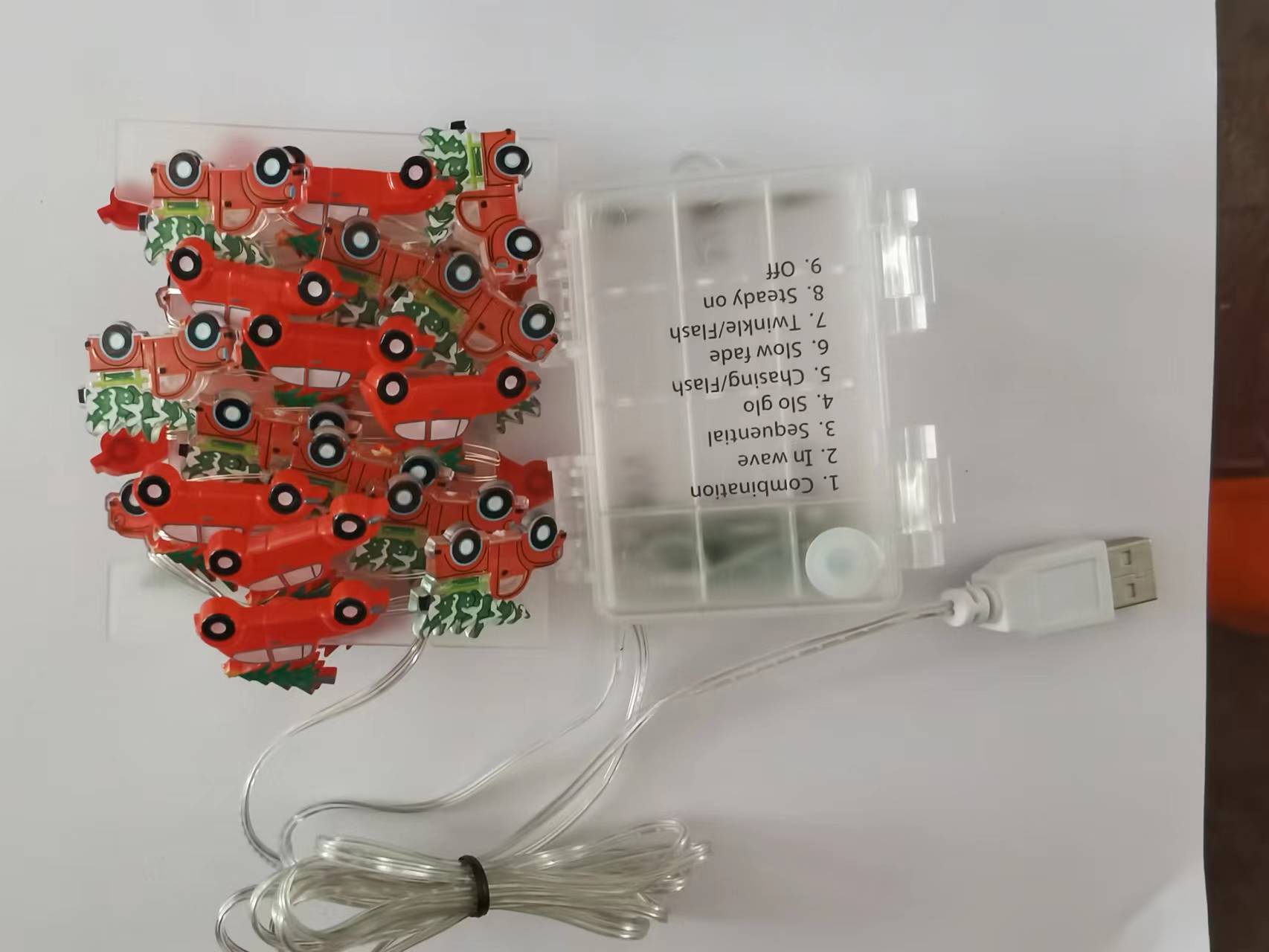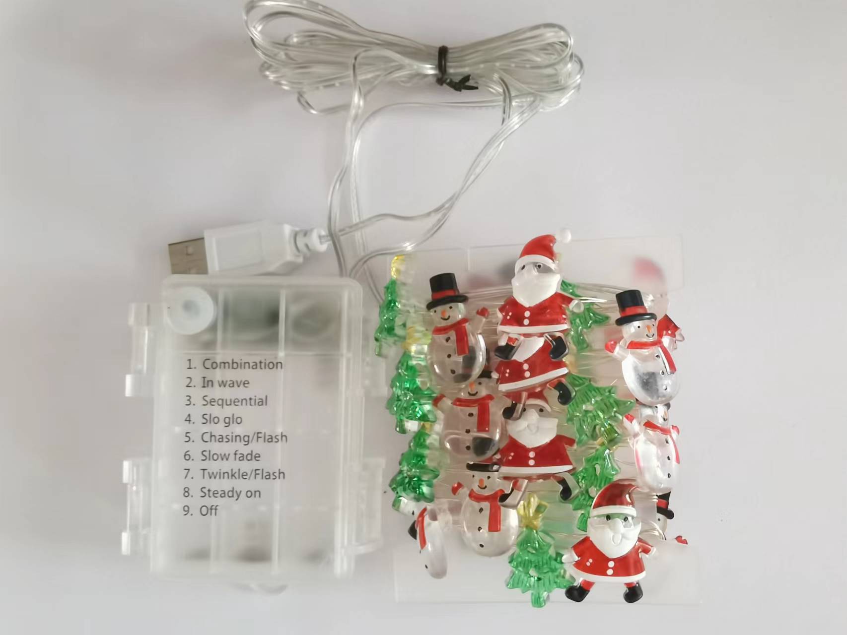 | Poder | 1 metro 10 lámpara 2AA caja de batería siempre brillante,2 m 20 lámpara 2AA caja de batería,3 m 30 luces siempre encendidas caja de batería 3AA,3 m 30 luz con caja de batería intermitente,3 metros 30 luces 8 funciones mando a distancia modelo enchufable USB,3 m 30 lámpara 3AA impermeable caja de batería de control remoto,3 metros 30 luces 8 funciones modelo solar |