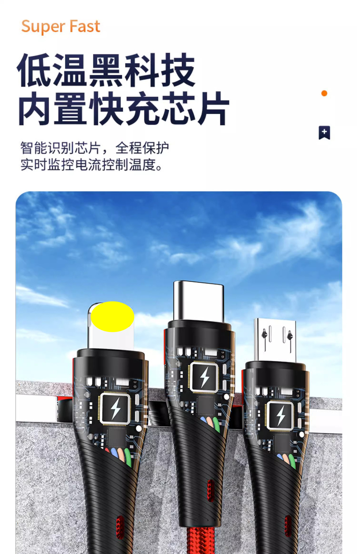200W es adecuado para Huawei Android Apple 3 en 1 línea de datos móvil de carga rápida cliente un cable de carga de tres tiros
