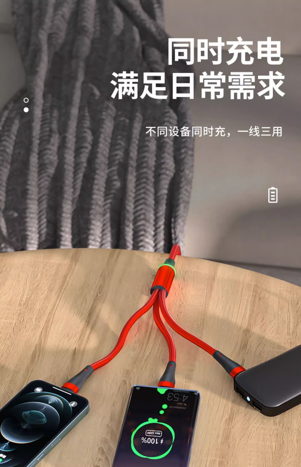 Red de pesca luminosa de 100W tejida uno a tres adecuado para Android Huawei Apple tres-en-uno 6A cable de datos de carga rápida